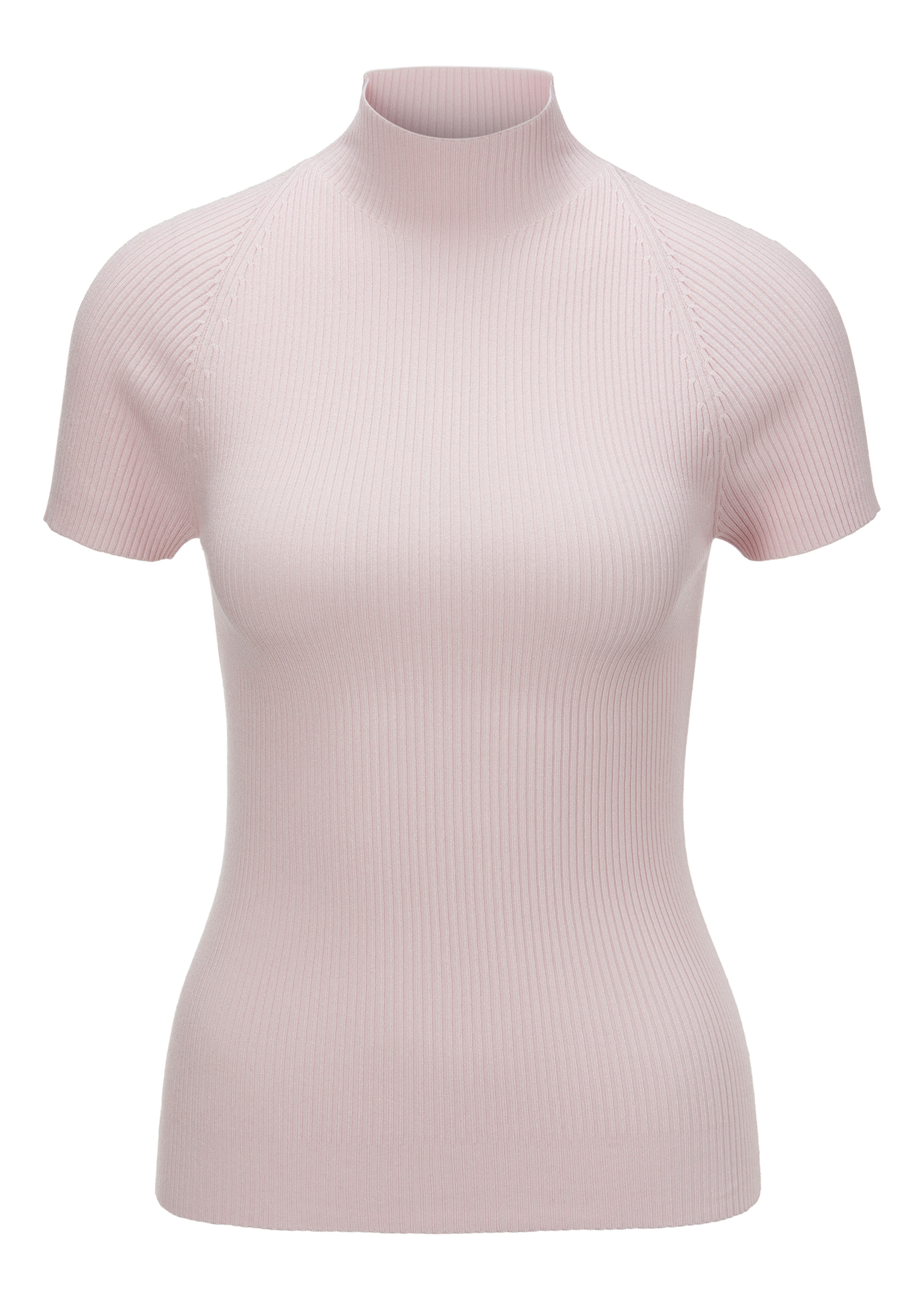 Aangenaam elastische ribtricot met opstaande kraag en korte raglanmouwen.