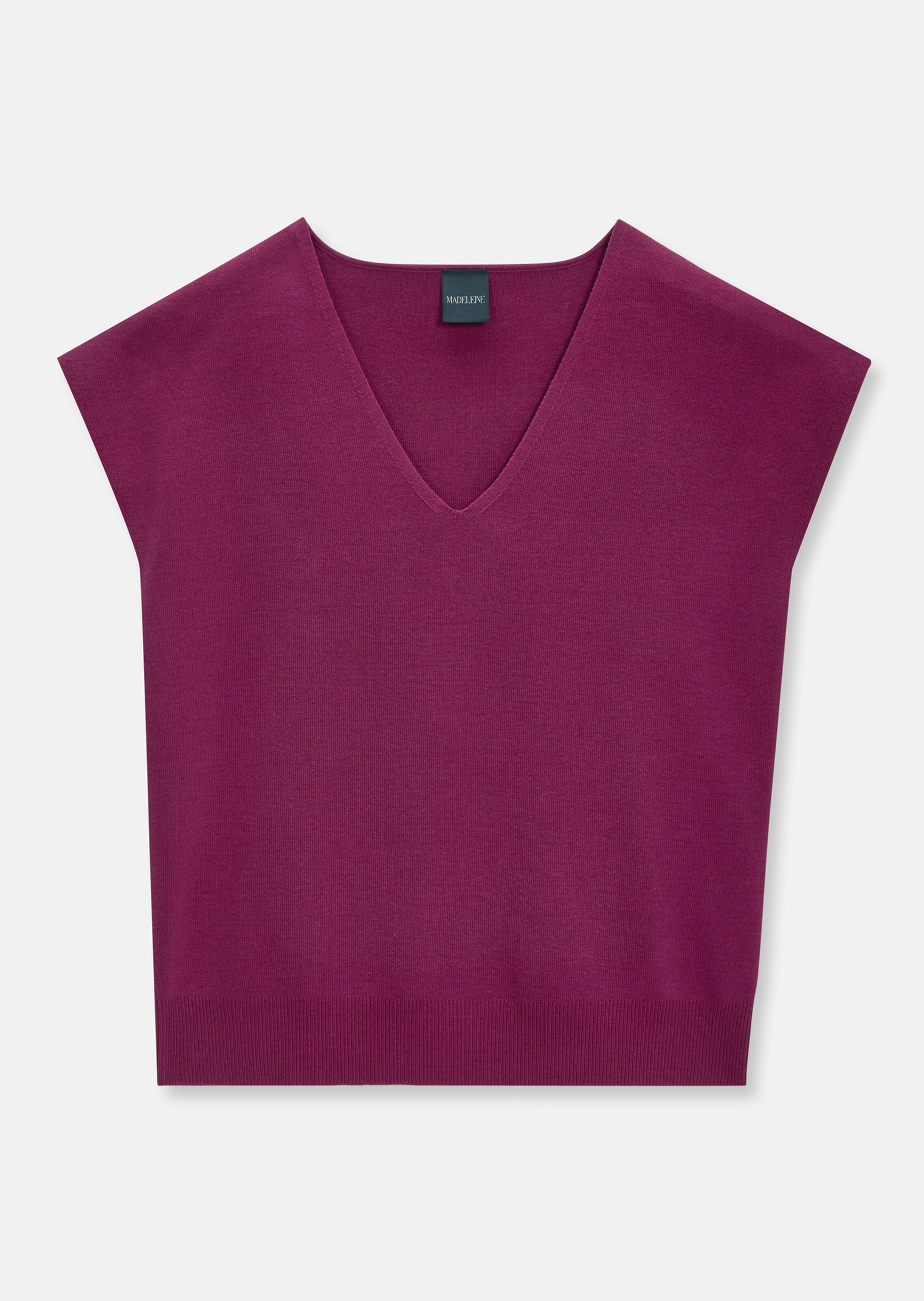 In coole slipover-stijl; als solist te dragen of in een laagjeslook over een blouse. Nonchalant model met V-hals en aangeknipte schouders. Aangenaam koel op de huid.