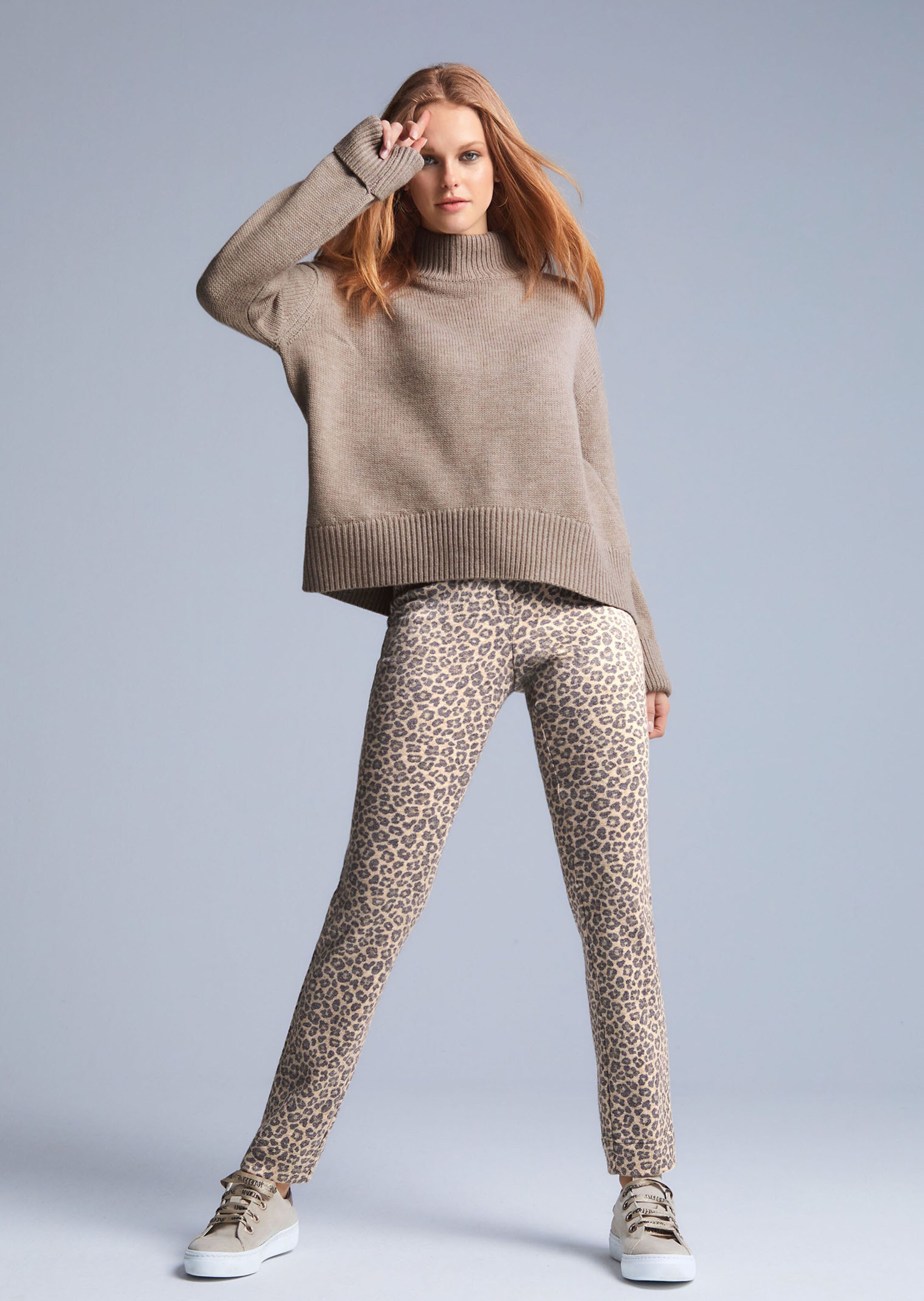 Populair, boxy model met markante ribtricot aan de omslag van de mouwen, de gedoubleerde, opstaande kraag en de zoom. Met lange mouwen, aangebreide schouders, verlengd voorpand en afgeronde zoom aan de achterkant.