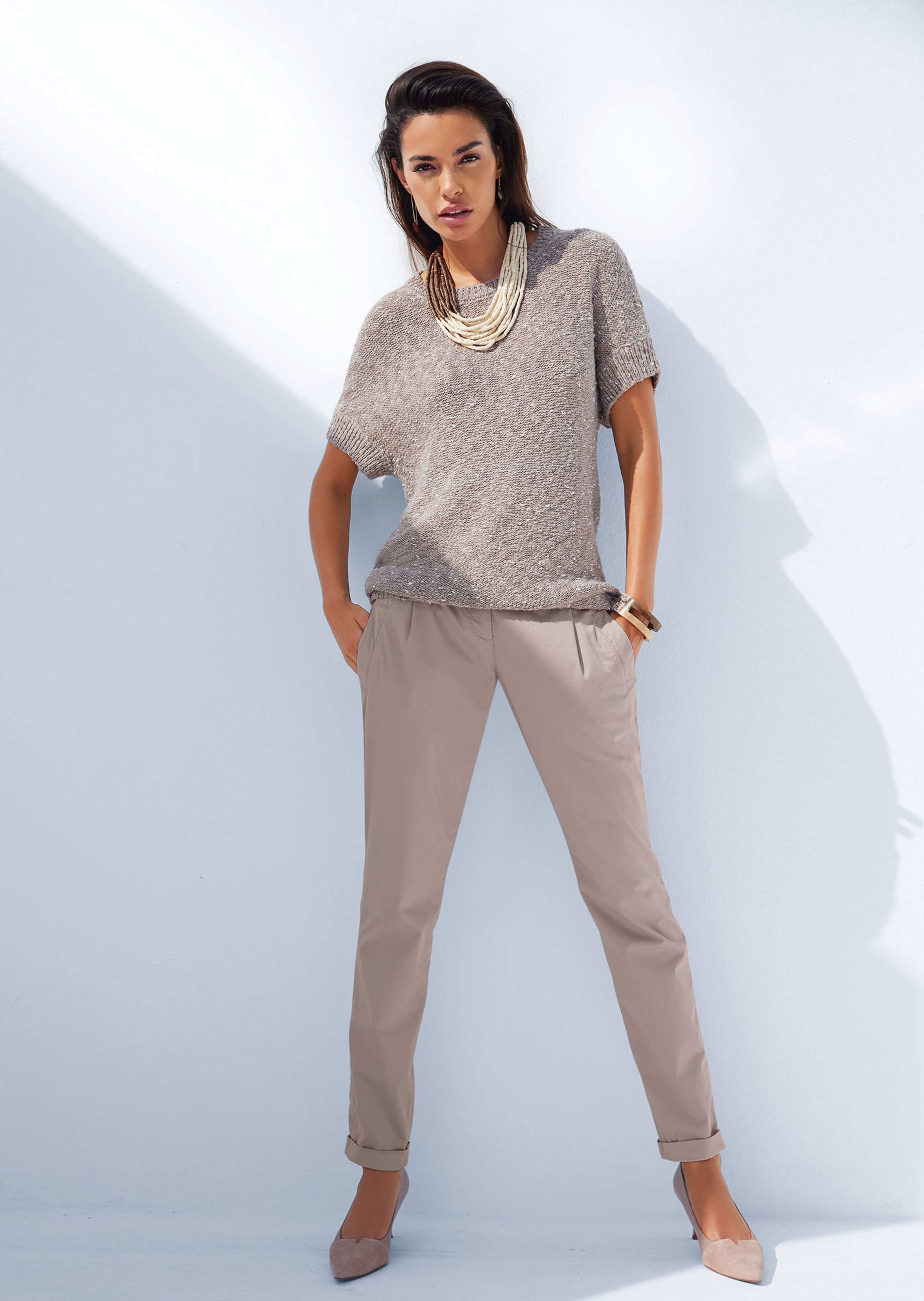 In een aangenaam te dragen garenmix. In een casual lijn en aantrekkelijke, tweekleurige finish, met een ronde hals en korte mouwen. Mouwen met mooi in model blijvende ribboordjes.