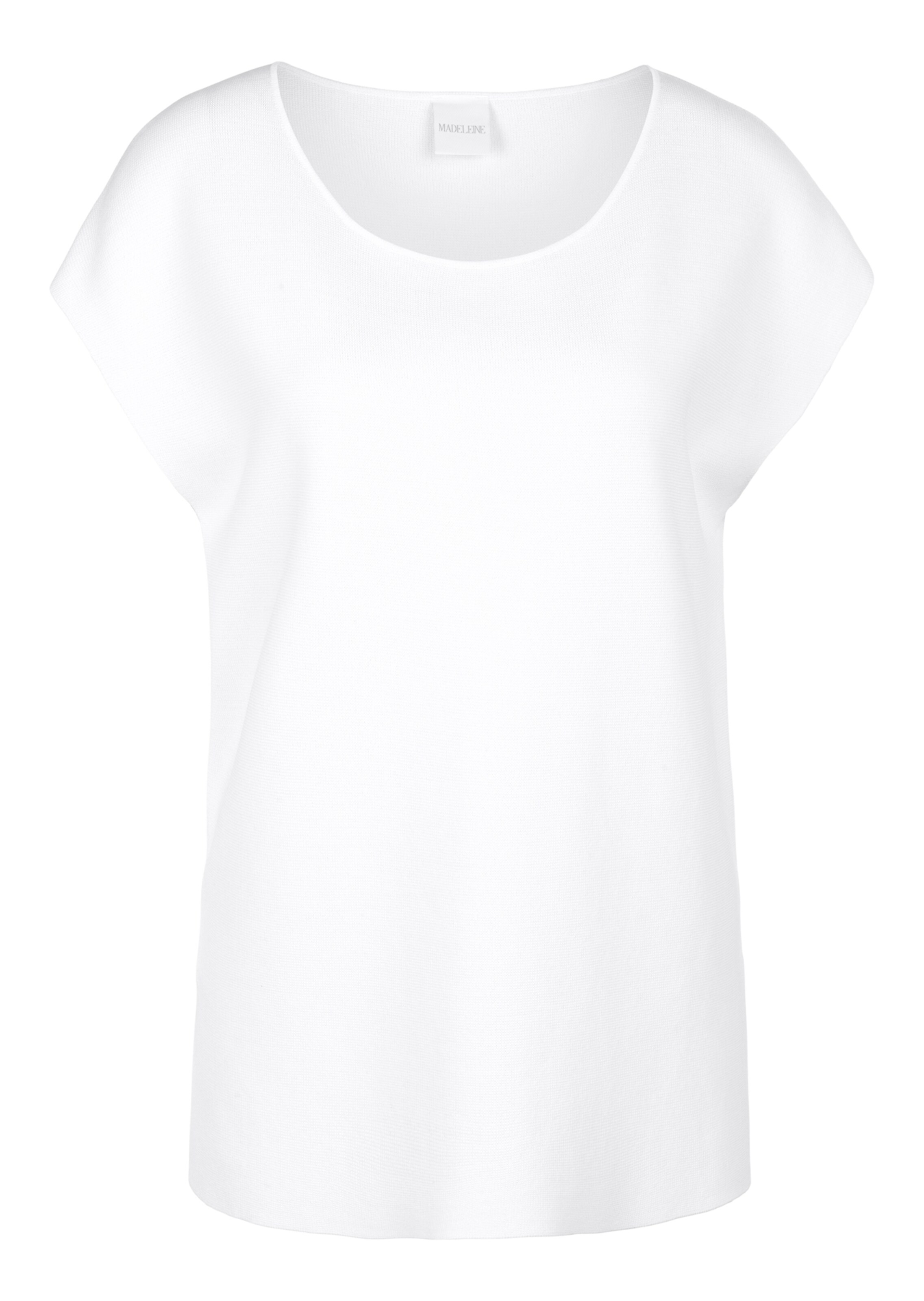 Met een platte ronde halslijn en zijsplitten in de zoom. Mouwloos model in regular-fit-style van waardevolle Milano-tricot.