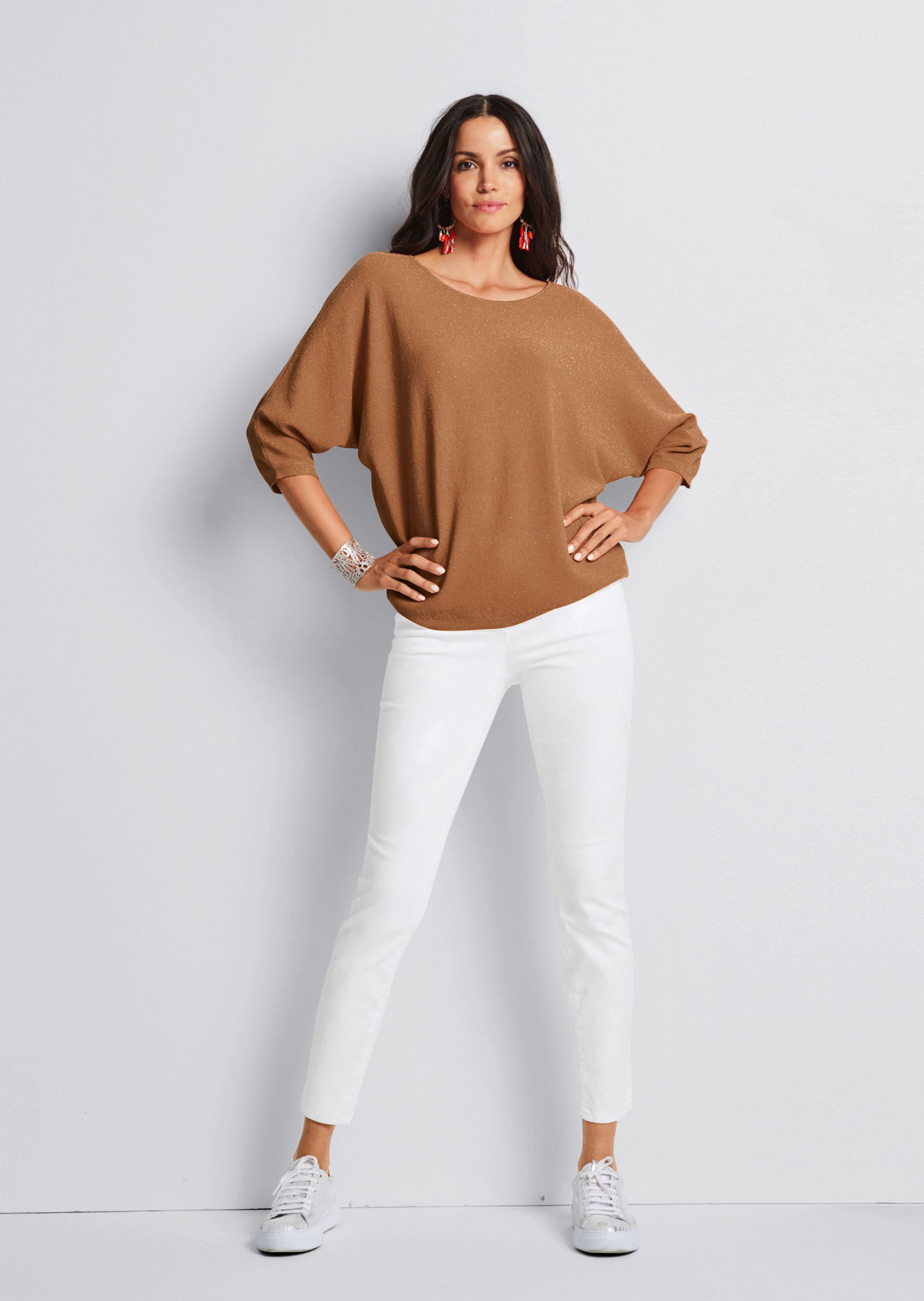 Met chique structuurtricot en fijn glansgaren. Casual model met een platte, ronde hals.