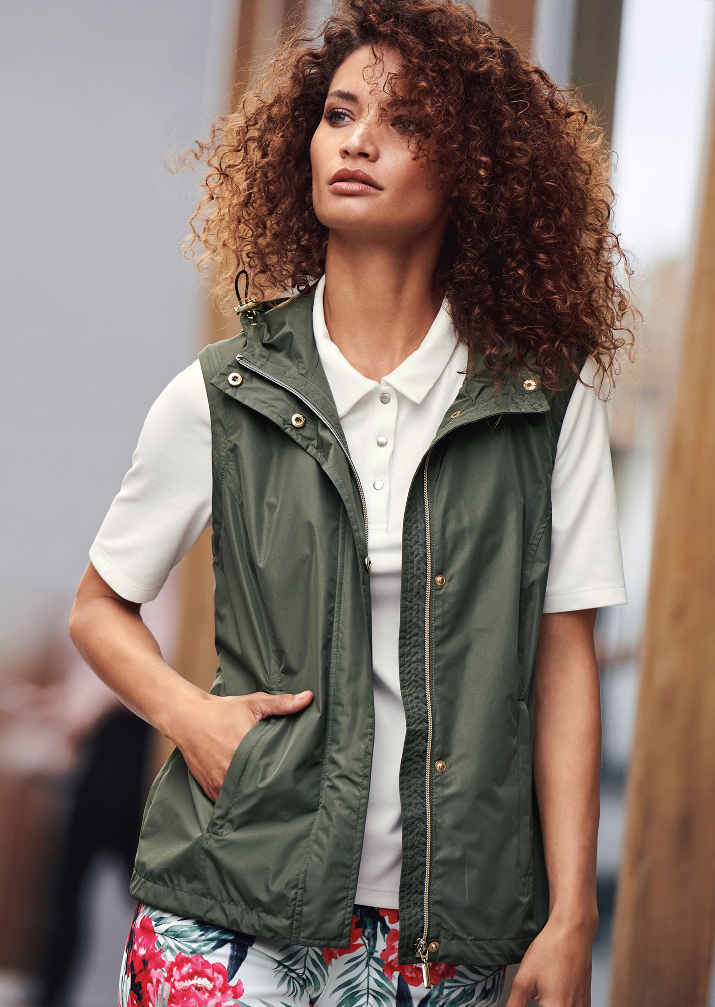 Vielseitigkeit ist Trend. Darum stehen Two-in-One-Modelle wie diese Jacke mit abzippbaren Ärmeln, die man auch als Weste tragen kann, ganz oben auf der modischen Wunschliste von sportlichen Fashion-Frauen. Die Jacke ist schön schlank und figurbetont mit Wiener Nähten geschnitten. Ihr Style ist ebenso cool wie praktisch. Sie hat eine Kapuze mit Elastikband und Kordelstoppern, einen verdeckten Zipper mit Druckknopfleiste und 2 Eingriffstaschen mit Reissverschluss. Die Saumweite können Sie mit einem innenliegenden Tunnelzug verstellen.