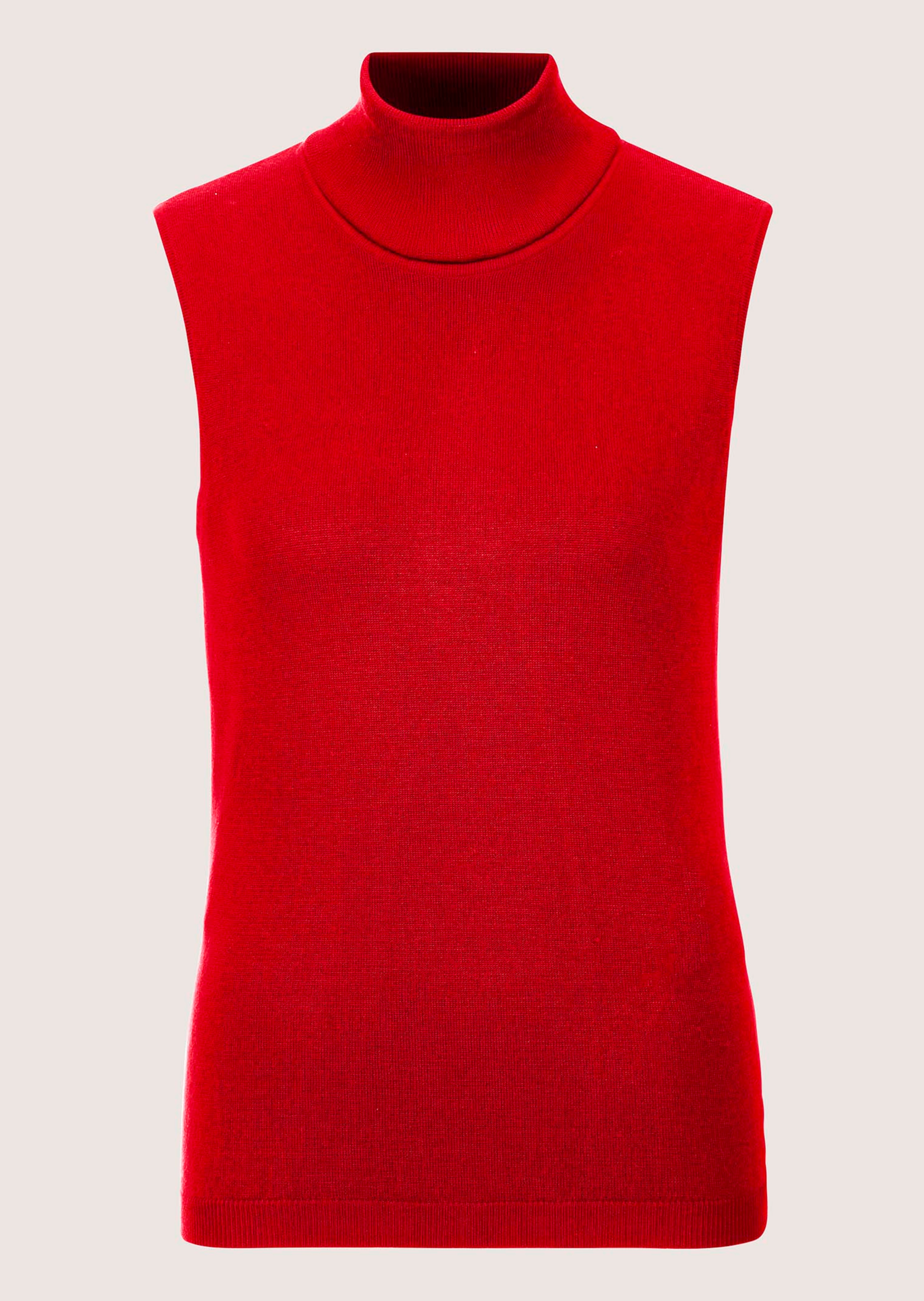Als Unterzieher und Solist ist dieser Pullover ein edler Favorit! Der formbeständige Viskose-Stretch schmiegt sich der Silhouette ideal an, ist tragefreundlich und leicht zu pflegen. Die ärmellose Form mit Rollkragen ist der ideale Basic-Pullover für unzählige Kombi-Variationen!