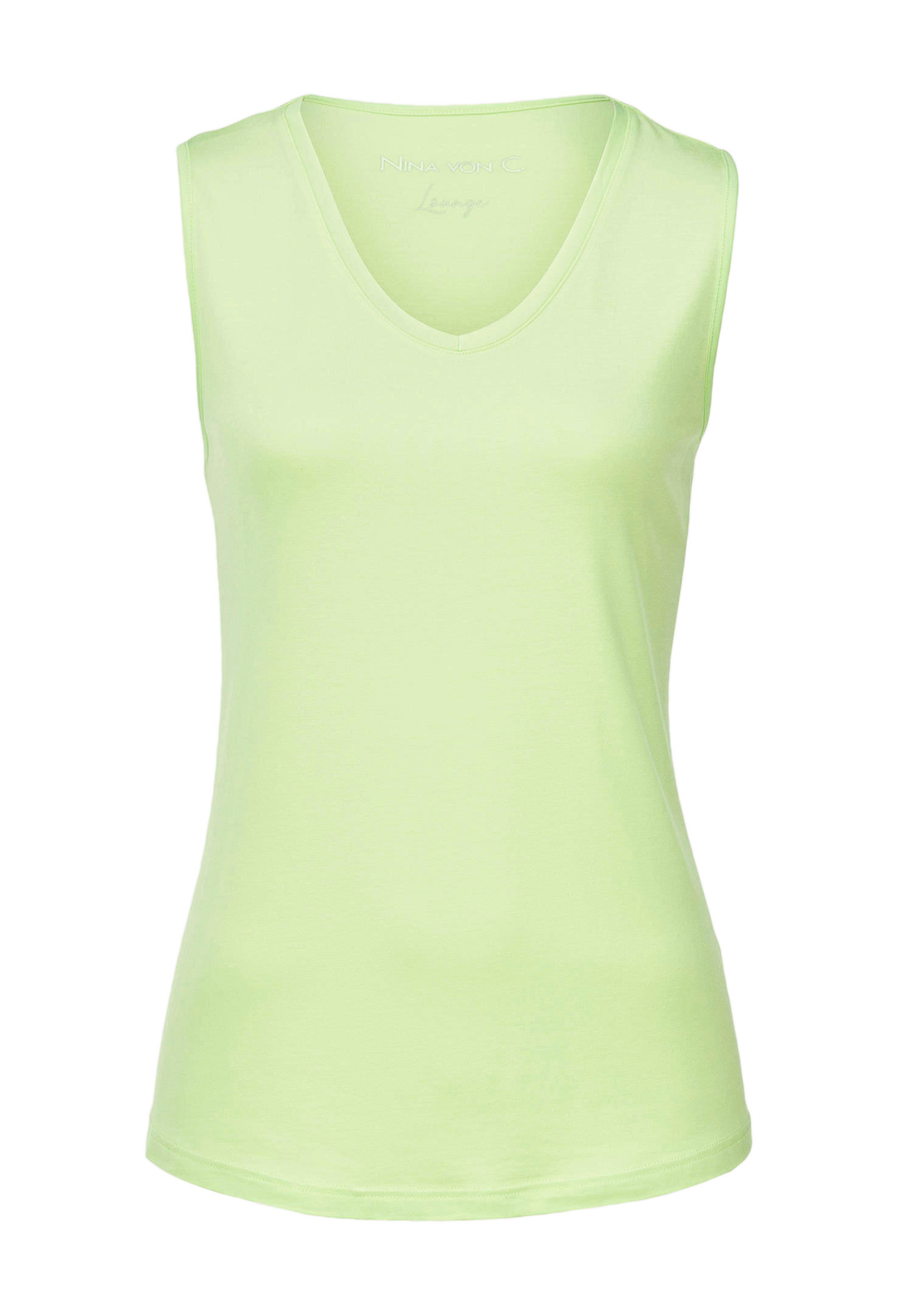 Ärmelloses Top von NINA VON C. – aus Baumwolle-Moda-Mix, das sich weich und anschmiegsam auf der Haut anfühlt. Die feine Jerseyware bleibt formstabil, während der paspelierte V-Ausschnitt und die Armausschnitte für einen femininen Auftritt sorgen. Der gerade, locker fallende Schnitt sorgt für ein angenehmes Tragegefühl und zeitlose Lässigkeit.