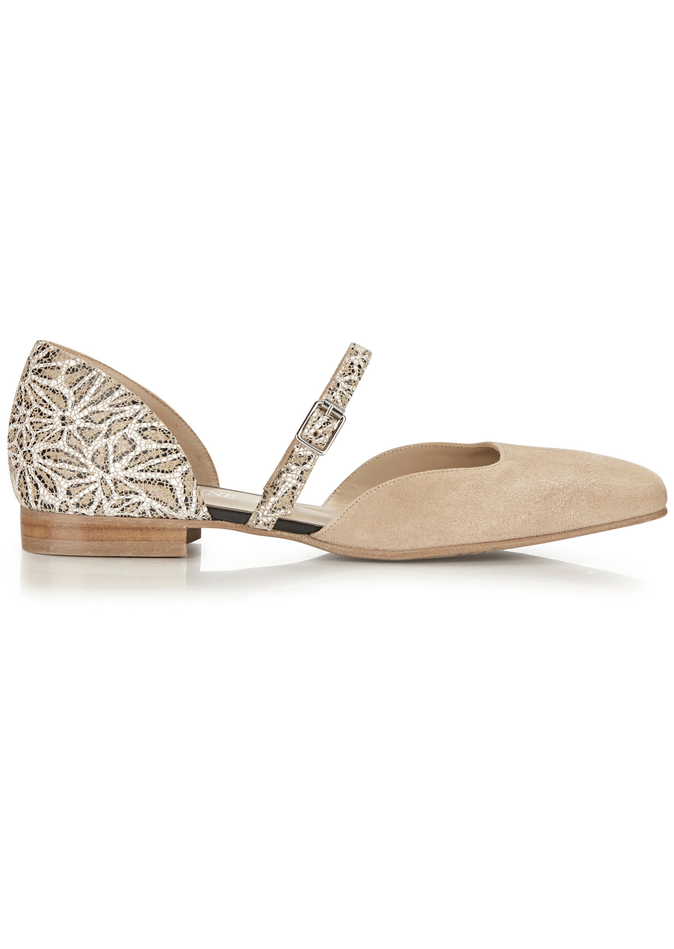 Ballerinas, die modisch aus der Reihe tanzen und mit reizvollem Kontrast begeistern. Ihre edle Modernität macht sie zu begehrten Must Haves und sorgt in vielseitigen Kombi-Varianten für Aufsehen. Die unifarbene Frontpartie ist aus samtig weichem Veloursleder und präsentiert sich in stilvoller Karree-Form. Fersenpartie und Spannriemchen dagegen setzen sich optisch ab. Sie sind aus fein geprägtem und farblich gemustertem Leder gefertigt und bringen modische Spannung in den Look. Das Spannriemchen, das an den offenen Seitenpartien fixiert ist, kann dank Metallschliesse individuell verstellt werden und passt sich perfekt der Fussform an. »Handgefertigt in Spanien« überzeugen die Accessoires mit viel Liebe zum Detail. Sie werden höchsten Ansprüchen gerecht und lassen in Sachen Material und Verarbeitung keine Wünsche offen.