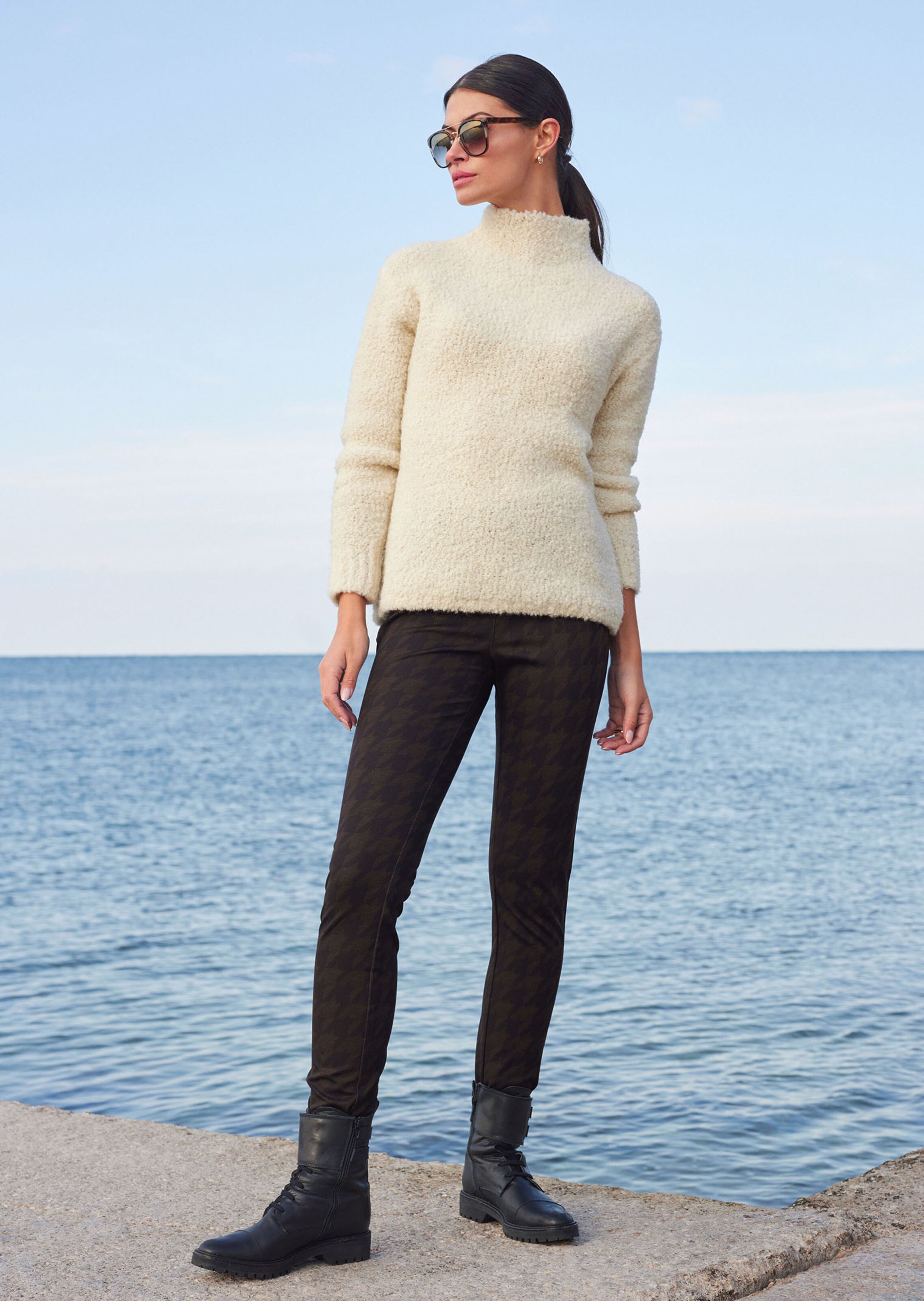 Wunderschöner Pepita-Print bringt stylischen Chic in den Look. Elastischer Jersey mit Dehnbund ist bequem zum Schlüpfen und macht die Leggings zum echten It-Piece. Fronttaschen und Hosenöffnung sind raffiniert angedeutet und tragen nicht auf. Der kofferfreundliche Stretch punktet mit hoher Bewegungsfreiheit und ist ideal auf Reisen. Aufgesetzte Gesässtaschen runden den Look ab.