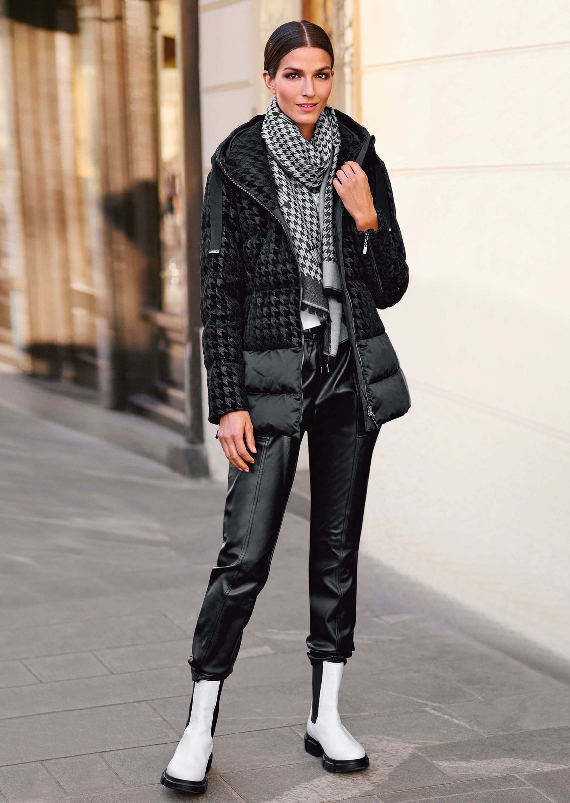 Lederimitat ist sehr gefragt und im Gegensatz zur Natur-Qualität besonders leicht zu pflegen. Die beschichtete Hose ist schlank im Look und mit modischen Teilungsnähten gearbeitet. Aufgesetzte Schubtaschen schaffen Stauraum und werden von rückseitigen Zierleisten ergänzt. Der Elastikbund wird von einem Durchzug mit Metall-Ösen in Szene gesetzt und ist bequem zum Schlüpfen.