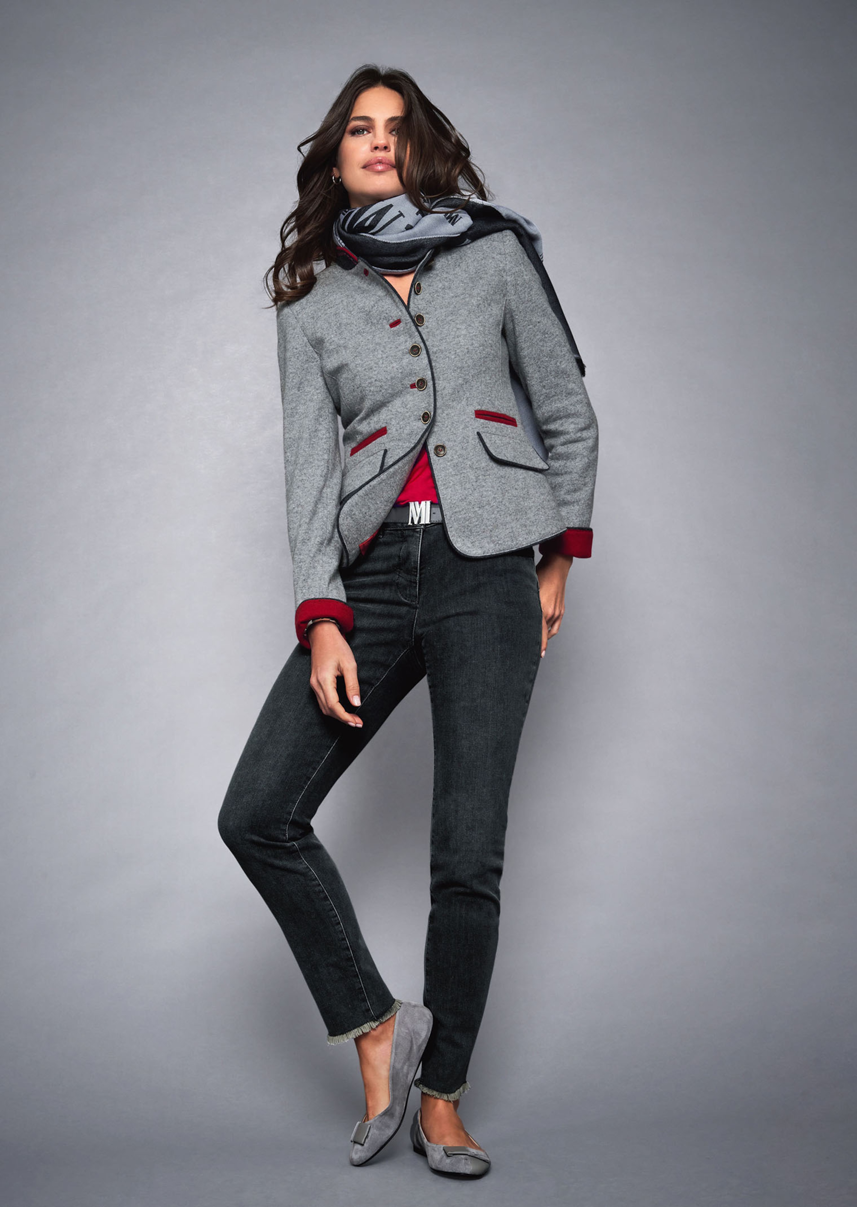 Sein modern interpretierter Trachtenlook macht ihn zum Must Have stilbetonter Stylings. Der Blazer mit Stehkragen trägt sich angenehm wärmend durch den hochwertigen Woll-Mix. Der schlanke Style ist mit Schulterpolstern, Satinaufhänger und markanten Knöpfen gestaltet. Kontrastakzente setzen die Taschenpaspeln, Knopflöcher, Ärmelsaumbelege und den Kragen in Szene. Der Mix aus Paspel- und Pattentaschen macht ihn so modern. Dank seiner Farbkomposition können Sie ihn gut zu femininen Tönen und zu Denims kombinieren.