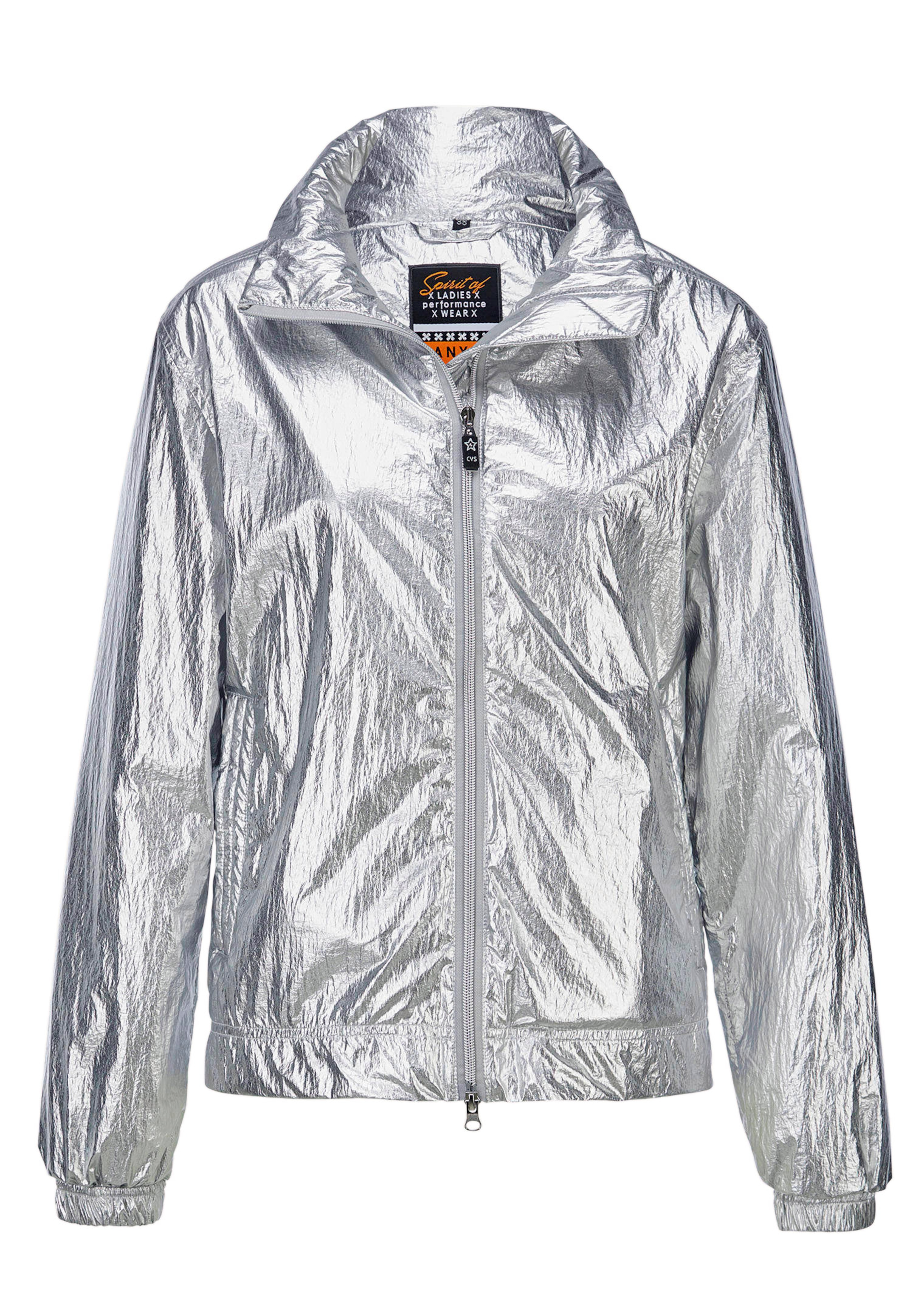 Mit der Windjacke von CANYON setzen Sie ein modisches Statement – auffällig, modern und sportlich. Die silberne Folien-Optik lässt Sie strahlen, während das leichte Material zuverlässig vor Wind schützt. Das weisse Mesh-Futter sorgt für angenehme Frische, egal ob bei einem Spaziergang durch die Stadt oder einem spontanen Outdoor-Abenteuer. Details wie der hohe Stehkragen, der durchgehende Reissverschluss mit dekorativem Zipper, die Schulterpasse und die Ärmelbündchen mit Gummizug machen die Jacke zu Ihrem neuen Lieblingsstück. Zwei praktische Eingrifftaschen runden den Look ab und bieten Platz für Ihre Essentials.