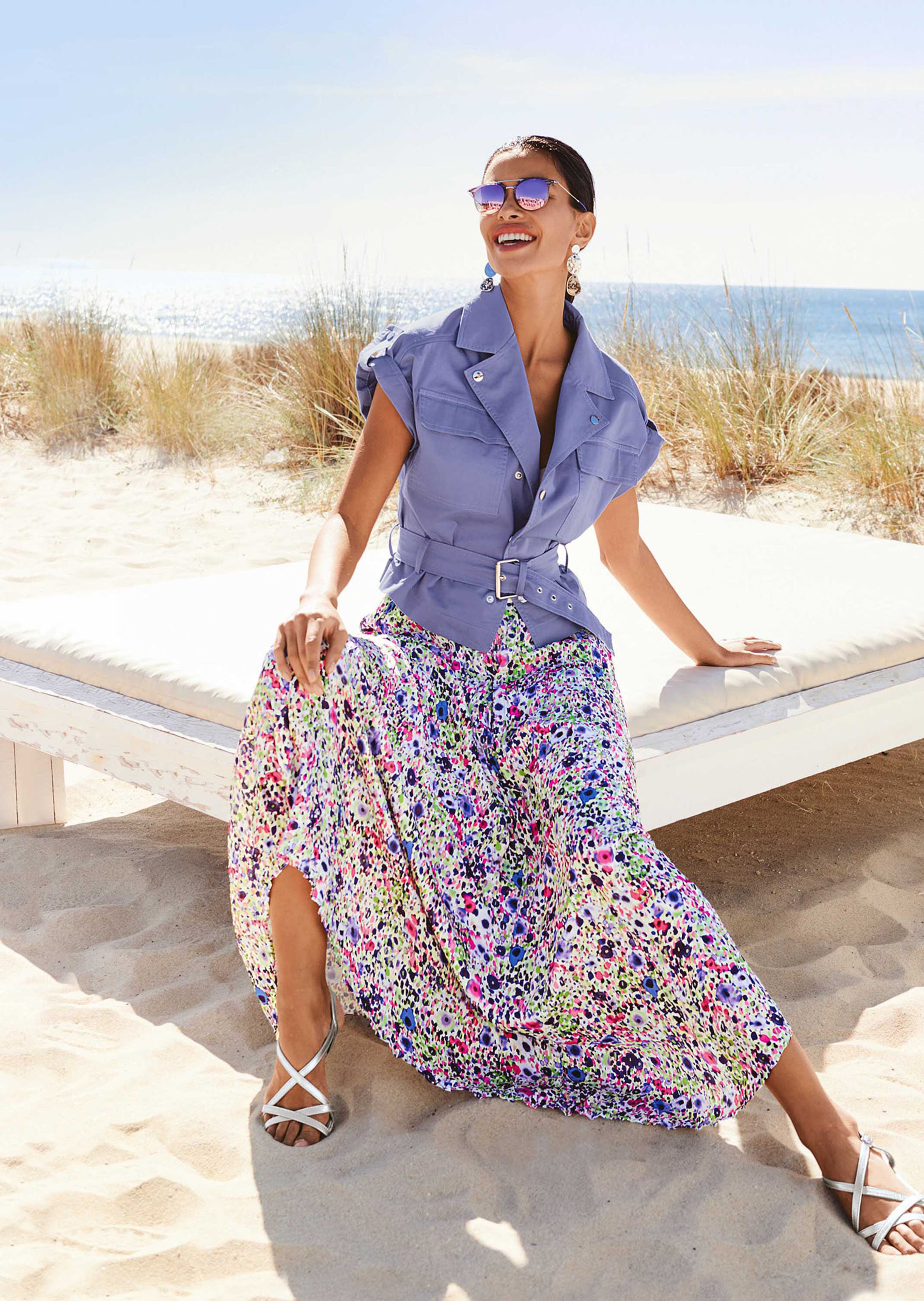Ein fantastischer Eyecatcher! Der bunte Plisseerock spielt in seinem Trendprint mit den Farben der Saison. Die fliessende Sommerqualität schwingt wunderschön bei jedem Schritt. Durch den Elastikbund trägt er sich angenehm. Dank zweier Grössenläufe mit zusätzlichen Kurzgrössen können ihn auch kleine Frauen prima tragen. Aufgrund seiner Farbvielfalt können Sie ihn vielseitig kombinieren – sehr schön zu zarten Farben.