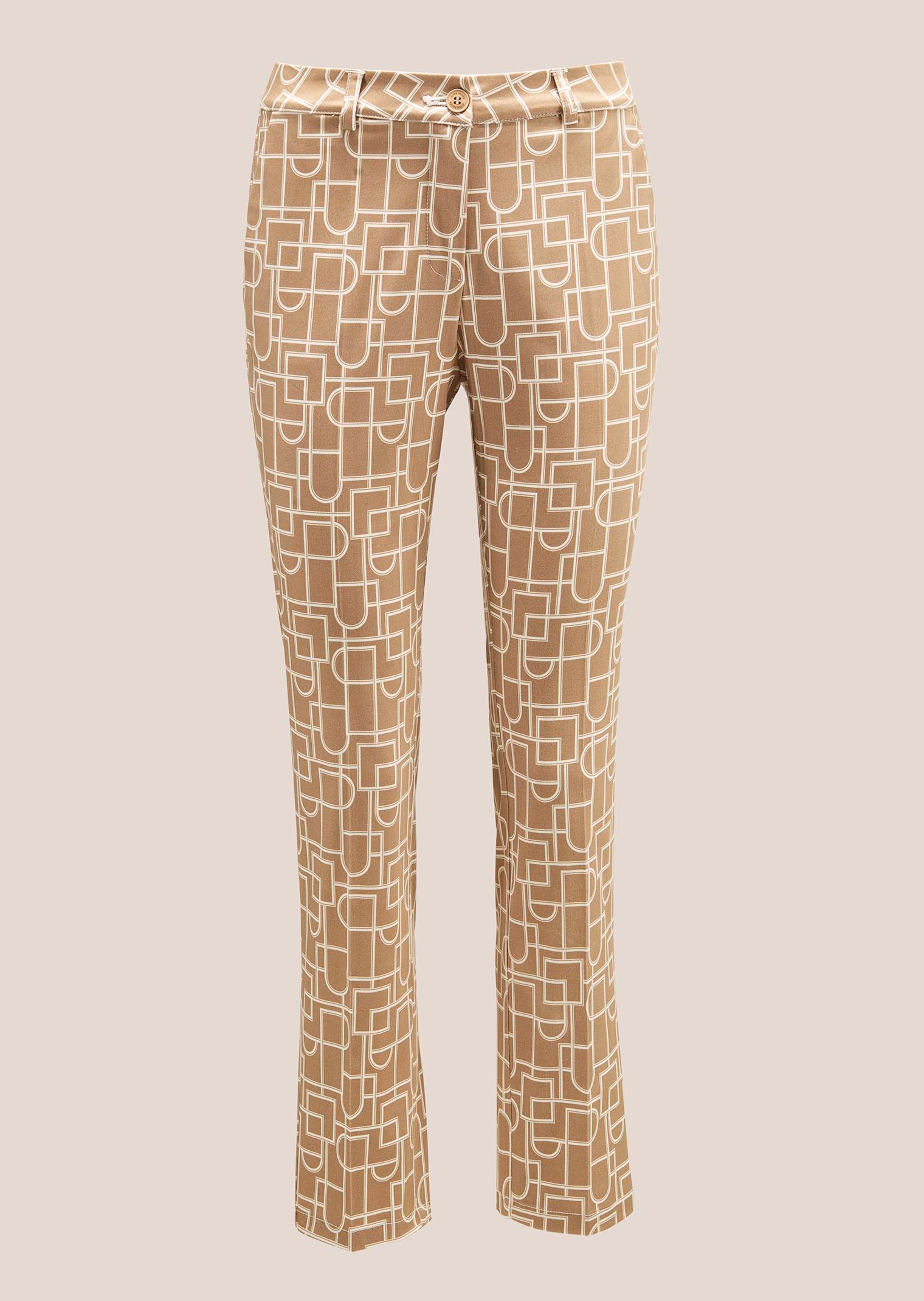 Sind Sie auf der Suche nach einem stilvollen Begleiter für sommerliche Anlässe? Unsere Druckhose vereint Vielseitigkeit und Eleganz in einem Kleidungsstück. Mit ihrem ansprechenden grafischen All-Over-Print ist sie ein echter Blickfang und verleiht jedem Outfit eine frische Note. Dank des Formbunds inklusive Gürtelschlaufen sitzt sie perfekt. Mit praktischen Schubtaschen und Reissverschluss. Die schmale Passform aus hochwertiger Baumwoll-Stretch-Ware sorgt für eine bequeme und schmeichelhafte Silhouette. Die knöchellange Hose ist die perfekte Wahl für verschiedene Anlässe im Sommer. Egal ob für einen warmen Tag im Büro, einen Stadtbummel mit Freunden oder ein sommerliches Abendessen im Freien - mit der Druckhose sind Sie immer perfekt gestylt.