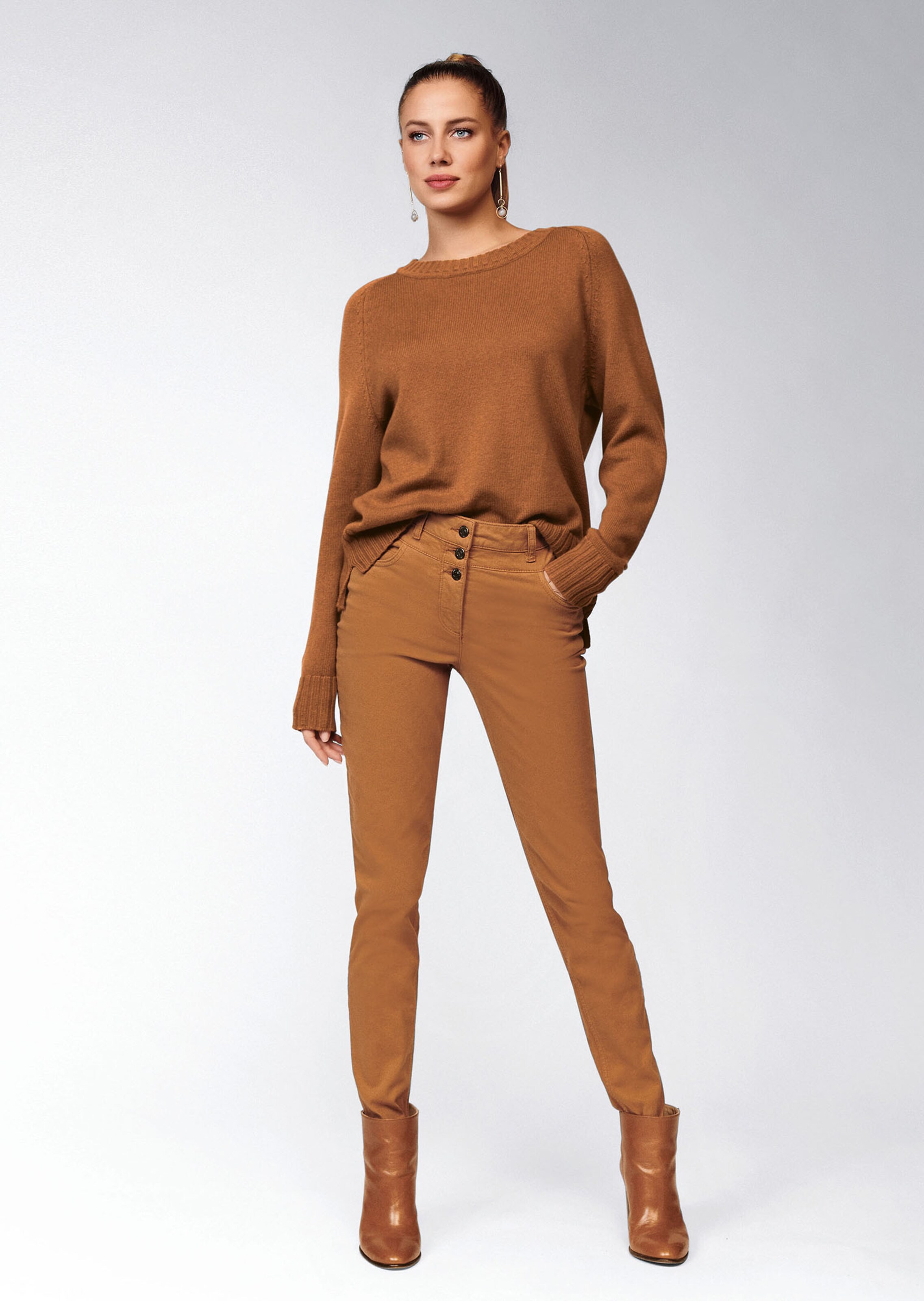 Eine enge Jeans im Skinny-Fit , die im raffinierten Highwaist-Style und formgebender Powerstretch-Qualität überzeugt. Durch die hohe Elastizität schmiegt sie sich ideal an und garantiert eine exzellente Passform. Der hohe Bund bestimmt die moderne Silhouette und bietet sich für das angesagte Proportionenspiel an. Der sportive Five-Pocket-Style in aktueller Knöchellänge zeichnet eine schmale Linie. Mit wertvoller MADELEINE-Ausstattung, Formbund mit Gürtelschlaufen und rückwärtiger Formpasse sitzt sie optimal. Durch den hohen Bund kann sie gut mit engen, eingesteckten Oberteilen ergänzt werden. Kombinieren Sie die Jeans einmal lässig und einmal elegant – ganz nach Anlass und Modelaune. Zwei Grössenläufe werden auch den Anforderungen kleinerer Frauen gerecht.