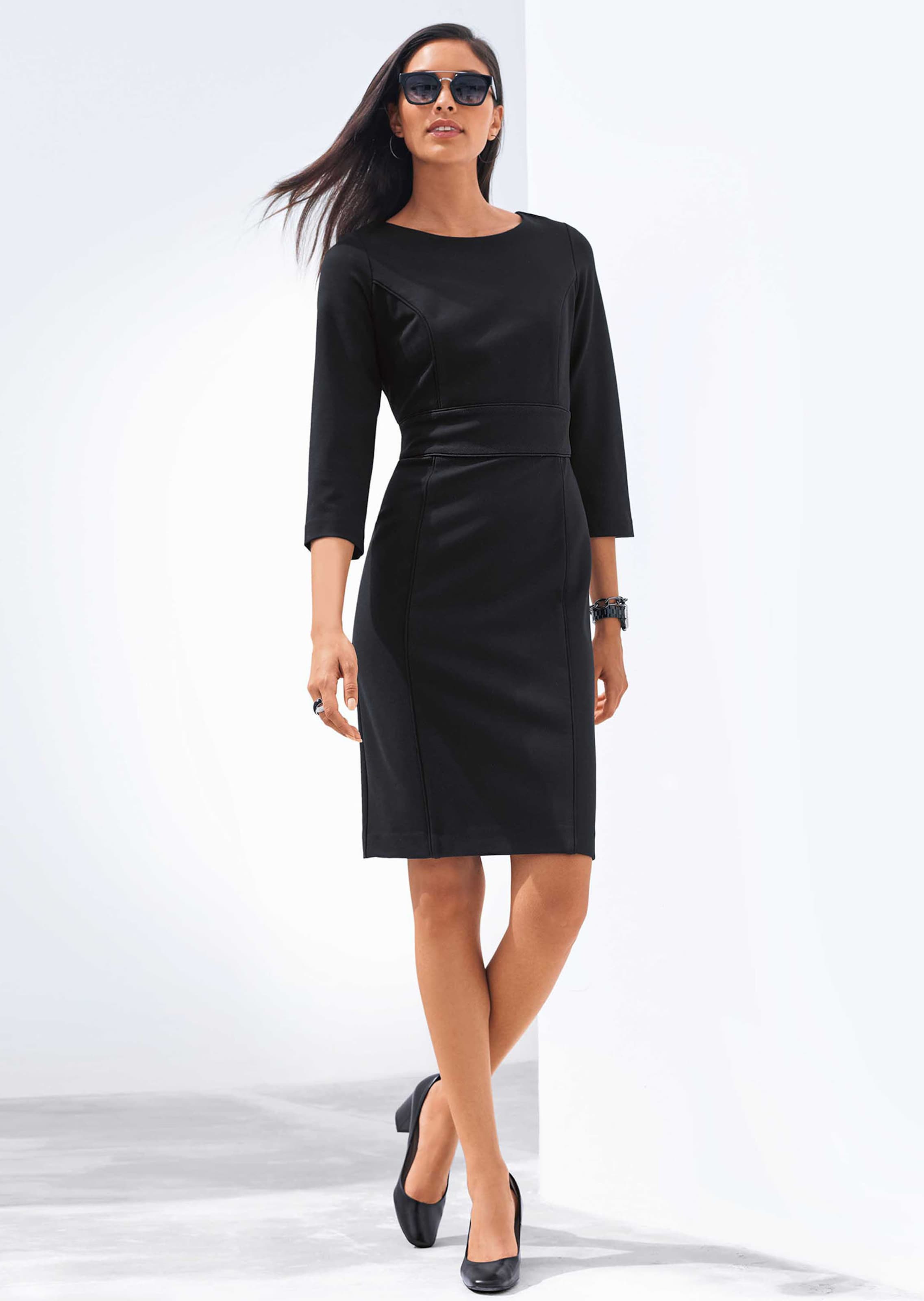 Die Silhouette ist figurbetont, der Ausschnitt hochgeschlossen, der Saum endet eine Handbreit unterhalb des Knies – schöner und eleganter kann ein Etuikleid kaum sein. Dieses formstabile Modell mit Stretch-Komfort sitzt stets perfekt. Es bietet sich als klassisches Business-Dress an, kommt aber auch auf Reisen oder festlichen Anlässen toll zum Tragen. Dank angenehm wärmendem Heavy Jersey und 3/4-langen Ärmeln ist das Etuikleid im Winter und im Übergang ein stilsicherer Fashion-Partner. Wiener Nähte vorne und hinten schmeicheln der Figur. Die hochwertige Verarbeitung mit Reissverschluss sowie Gehschlitz hinten optimiert die Passform.