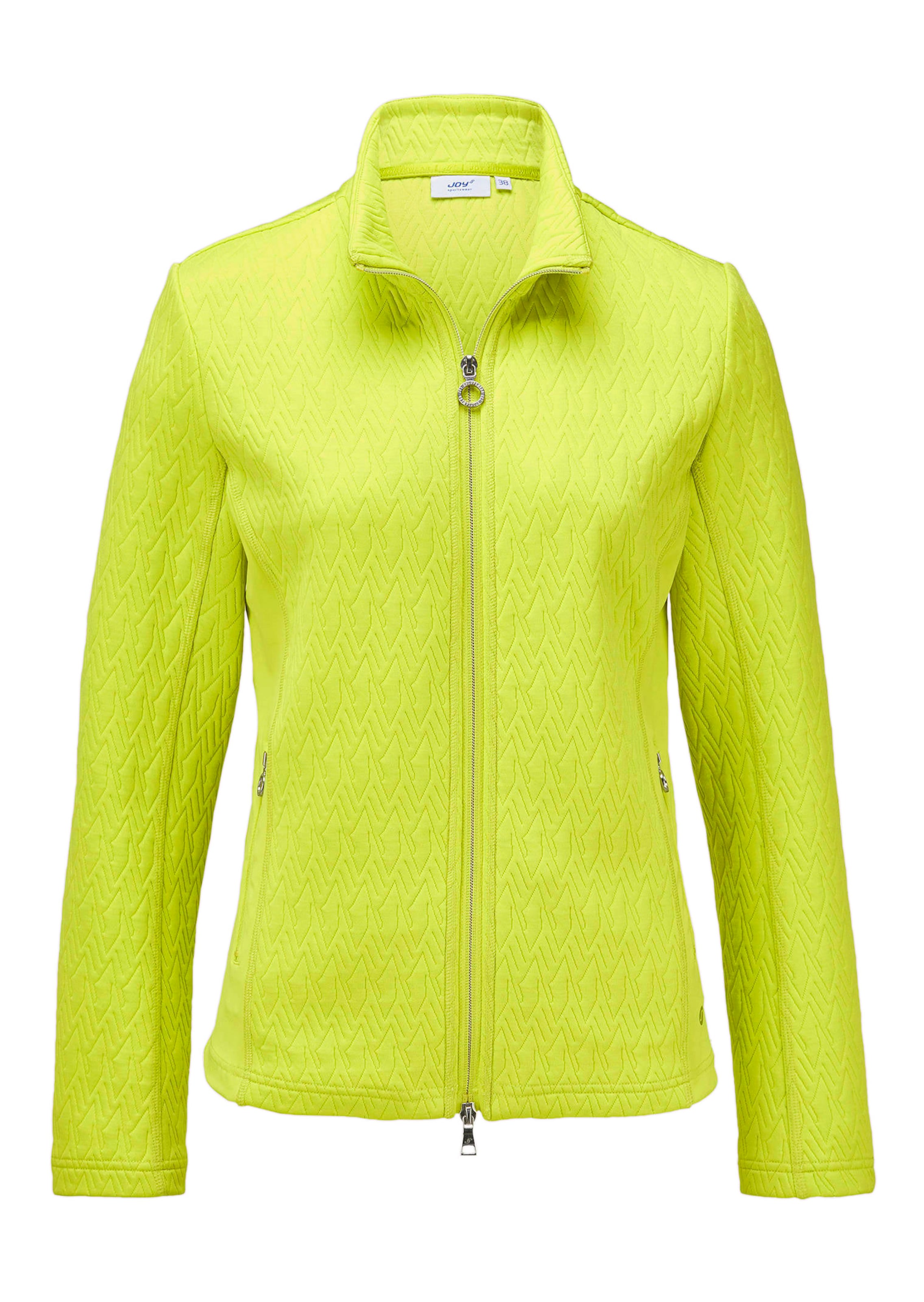 Ob bei Spaziergängen oder beim Stadtbummel – die JOY Freizeitjacke überzeugt durch ihre wandelbare Optik und hochwertigen Details. Der Stehkragen lässt sich variabel als Umlegekragen tragen, während die Zick-Zack-Struktur mit glatten Seiteneinsätzen und silbernem Band Akzente setzt. Zwei Reissverschluss-Eingrifftaschen und dekorative Zipperanhänger runden den praktischen und stilvollen Look ab.