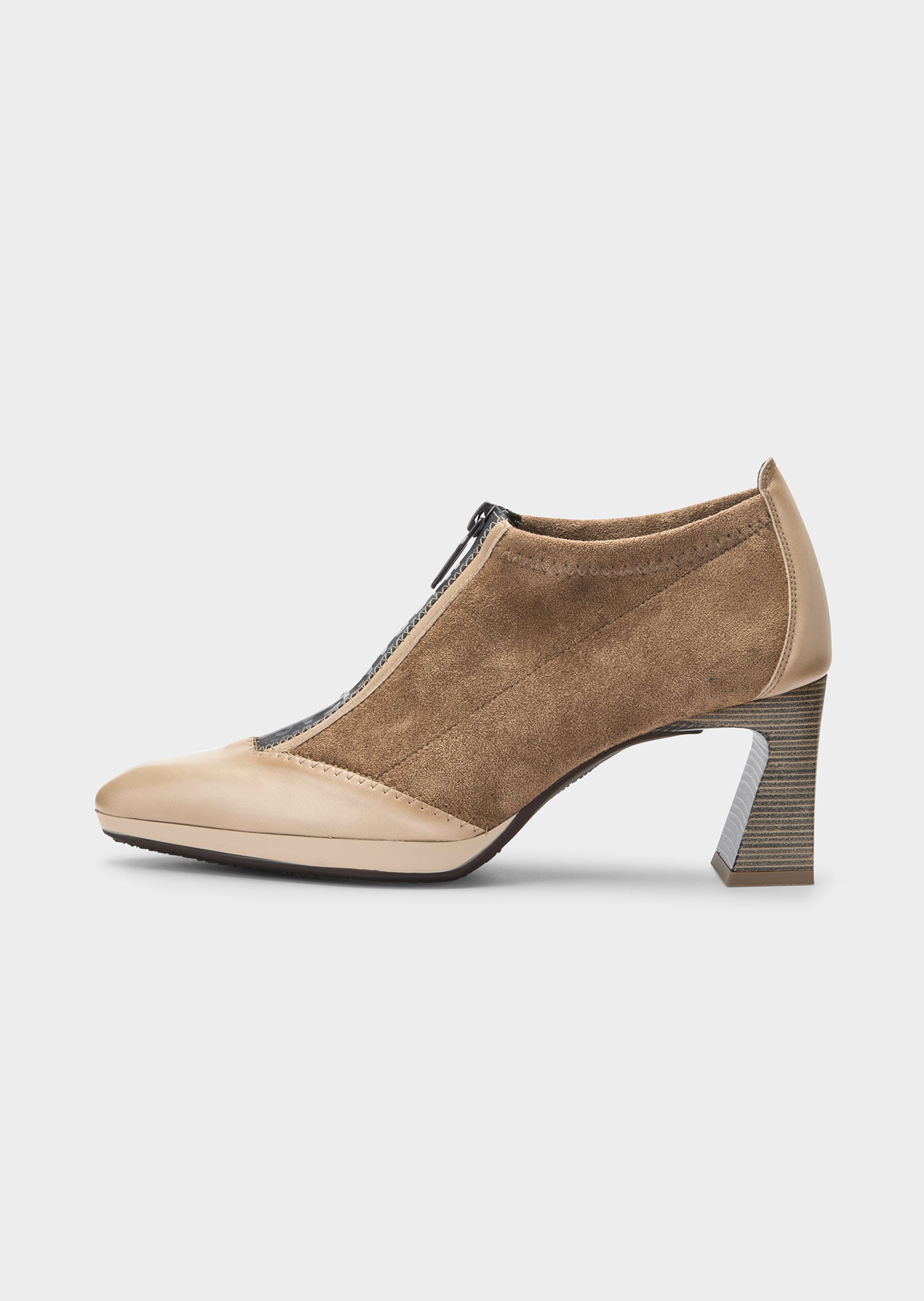Diese geschlossene Modell von HISPANITAS verbindet den modischen Look von Ankle Boots mit der Eleganz eines klassischen Pumps. Das Obermaterial aus Leder und Stretch passt sich dem Fuss an, der Reissverschluss mit Schlaufe sorgt für ein unkompliziertes Anziehen. Die leicht erhöhte Front, der komfortable Trichterabsatz und die Innenausstattung aus Microfaser und Leder zeugen von der gelungenen Verbindung aus Design und Komfort. Ein perfekter Stylingpartner zu Business-Looks, langen Wollmänteln oder eleganten Winter-Outfits.