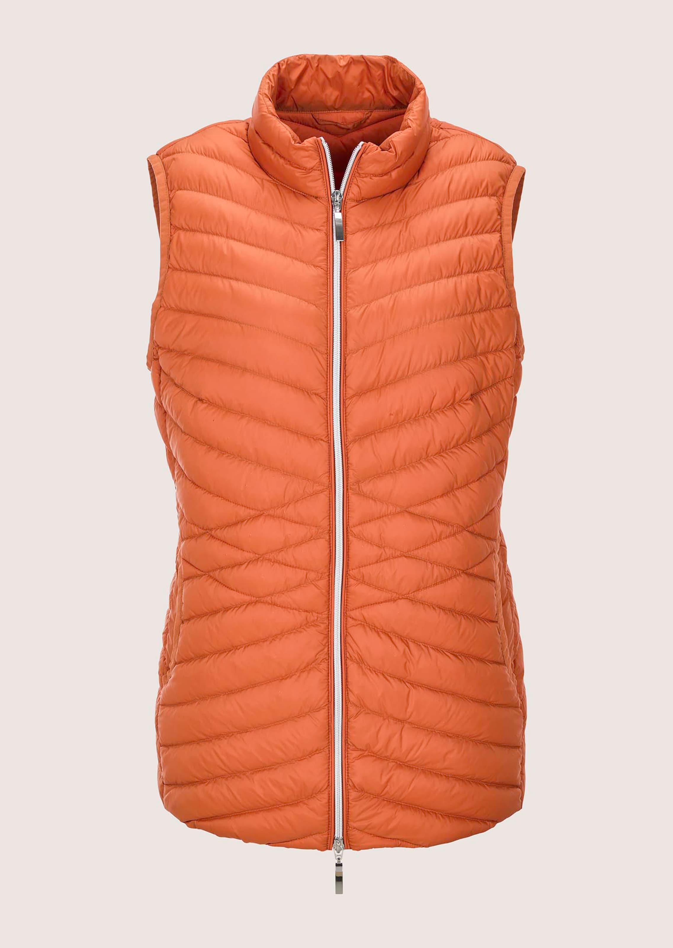 Wenn es für eine Jacke zu warm, aber für ein Shirt zu kühl ist, kommt diese Daunenweste ins Spiel. Sie ist angenehm leicht, hält dank der Daunen-Feder-Füllung zuverlässig warm und lässt sich vielseitig kombinieren – über einer Bluse oder als zusätzlicher Layer unter einem Mantel. Die quer verlaufende Steppung auf Taillenhöhe trägt nicht auf, Armloch und Taschen sind elastisch eingefasst. Der praktische Zwei-Wege-Reissverschluss lässt sich von beiden Seiten öffnen.