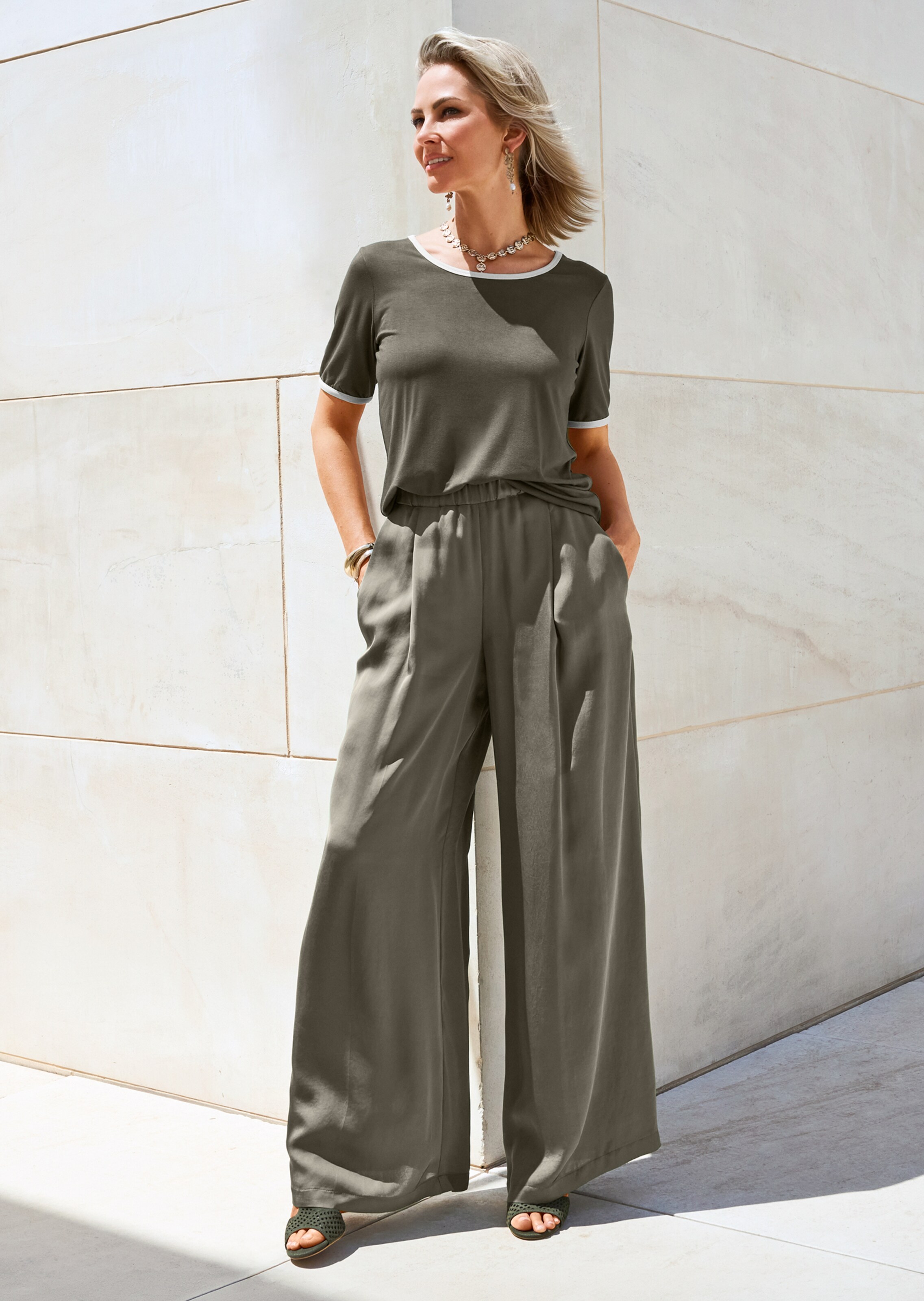 Ein Shirt, das ungetrübten Mode-Genuss verspricht und vielseitig kombiniert werden kann. Sein weich fliessender Viskose-Stretch ist angenehm kühl und soft auf der Haut und macht jede Bewegung problemlos mit. Rundhals-Ausschnitt und halblange Ärmel der trendstarken Kurzform sind grosszügig geschnitten und werden von feinen Kontrastpaspeln effektvoll akzentuiert.