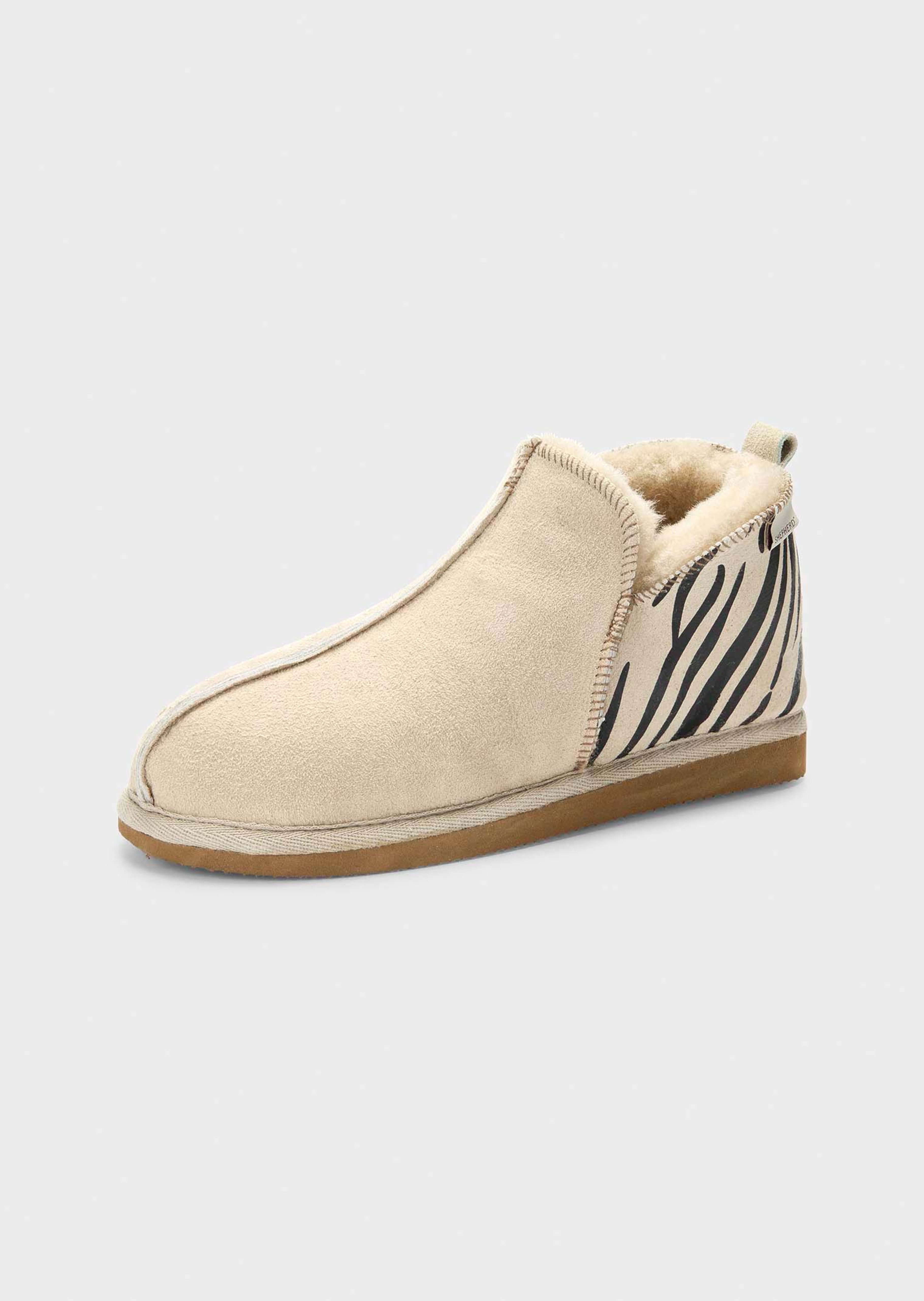 Rundum aus echtem Lammfell gefertigt, schenken diese Hausschuhe von SHEPHERD wohlige Wärme und ein angenehm weiches Tragegefühl. Der knöchelhohe Schnitt hält zusätzlich warm, während die Metallic- und Animal-Akzente im Fersenbereich für einen modischen Hingucker sorgen. Die leichte, flexible Sohle sorgt für Komfort bei jedem Schritt. Perfekt für gemütliche Stunden zu Hause.