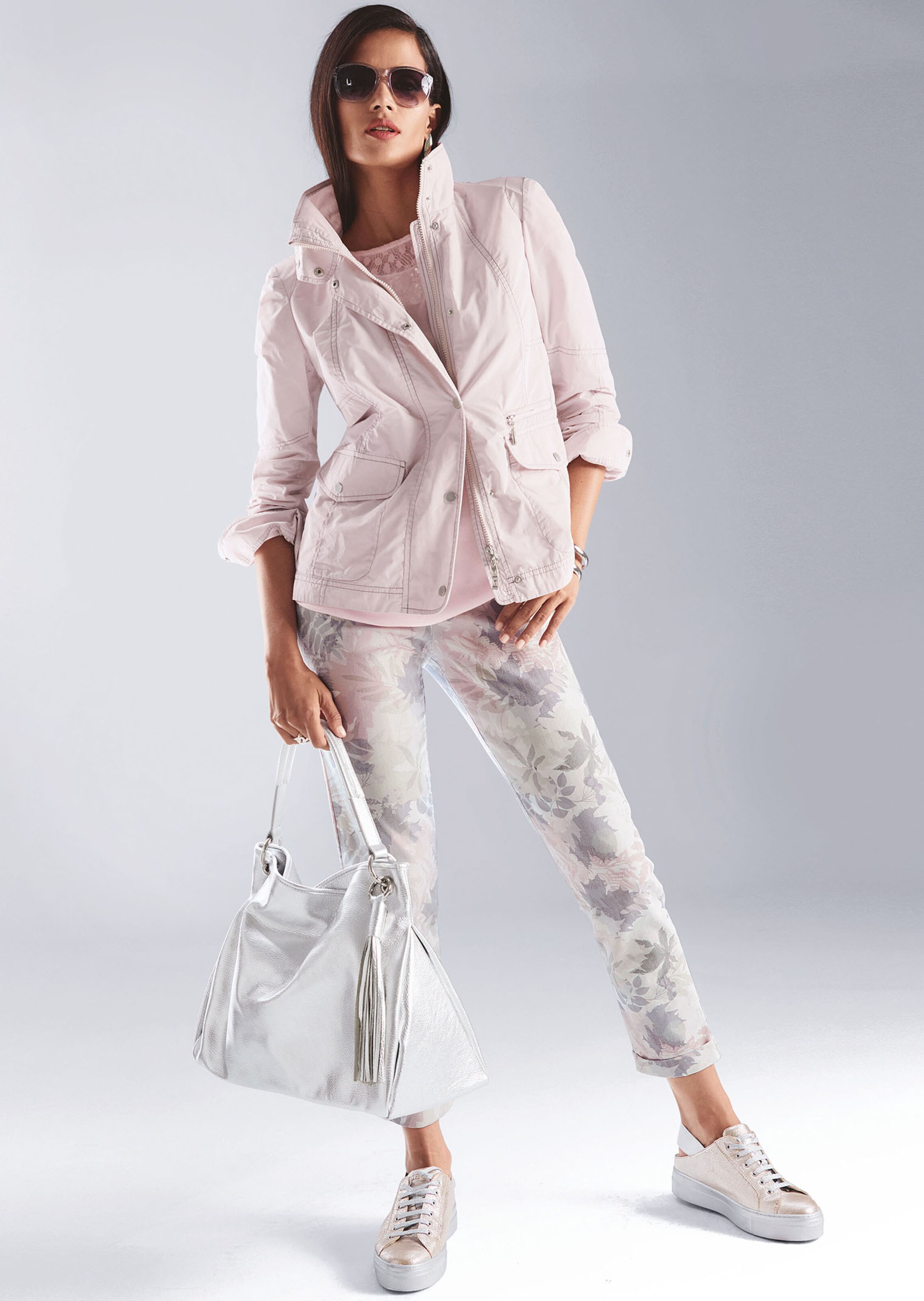 Die Hose mit Blätterprint ist eine sommerliche Eyecatcherin entspannt-eleganter Looks. Im angesagten Chino-Style mit schmal verlaufendem Bein zeichnet sie eine trendige Silhouette. Die sommerliche 7/8-Form ist mit Formbund, Gürtelschlaufen, schrägen Leistentaschen, Saumaufschlag und Fake-Gesässtaschen gestaltet. Der Baumwoll-Mix trägt sich angenehm und ist herrlich unkompliziert. Zwei Grössenläufe halten auch für kleinere Frauen das passende Modell parat. Die moderne Druckhose ist änderungsfreundlich, so können Sie sie auch individuell anpassen lassen. Kombinieren Sie sie zu ähnlichen Tönen für einen femininen Sommerlook der Saison.