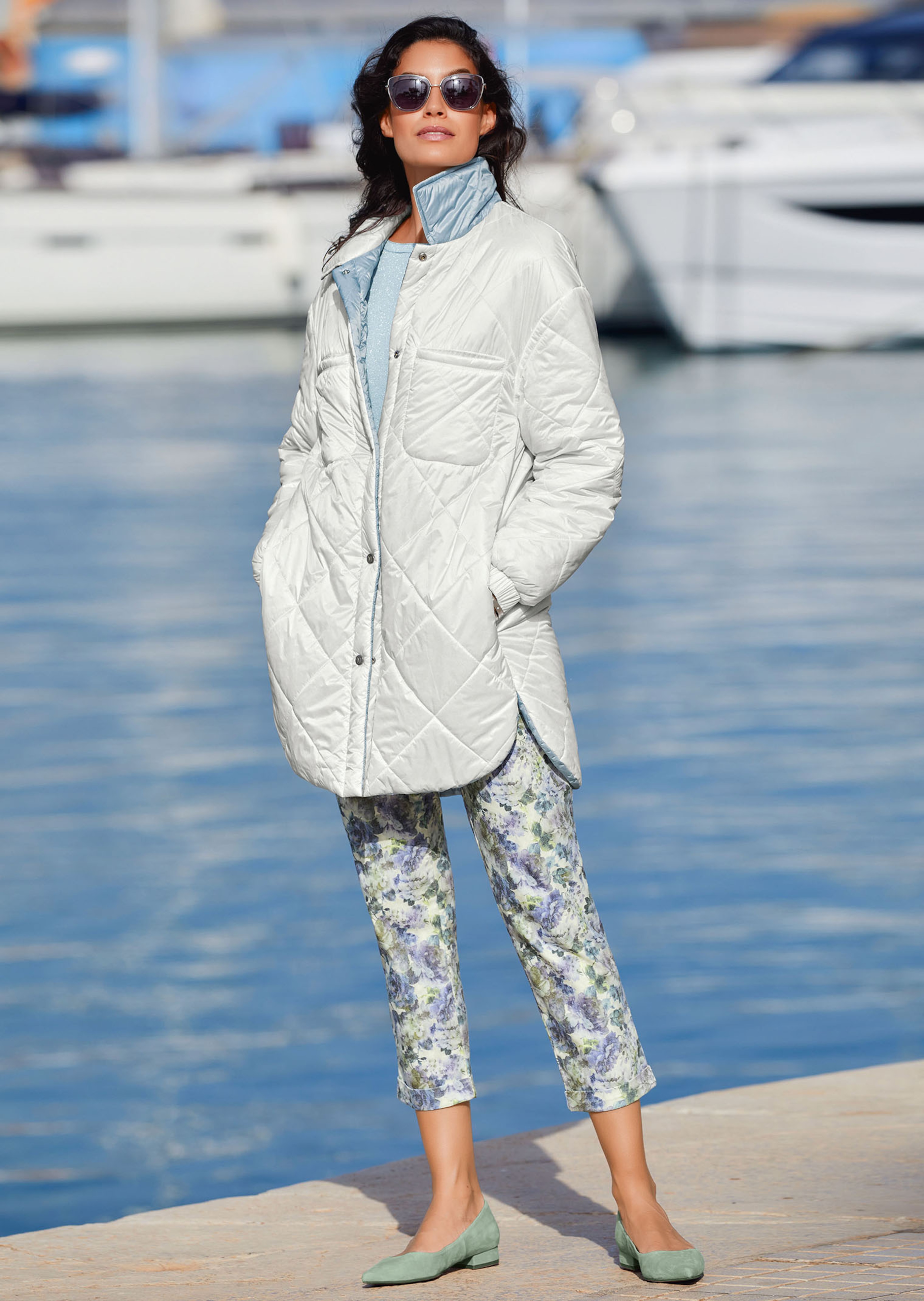 Hier überzeugt nicht nur die Optik, sondern auch die Herstellungsweise! Die Hose mit Blumenmuster lässt sich durch ihren kunstvollen Print gut zu schlichten Partnern kombinieren. Ihre elastische, leichte Sommerware wurde mit Bio-Baumwolle gefertigt. Der moderne Style in 7/8-Länge zeichnet mit seinem schmal zulaufenden Bein eine angesagte Silhouette. Ausgestattet ist sie mit Saumaufschlag, Gürtelschlaufen, Schubtaschen, rückseitigen Faketaschen und silberfarbenen Accessoires.