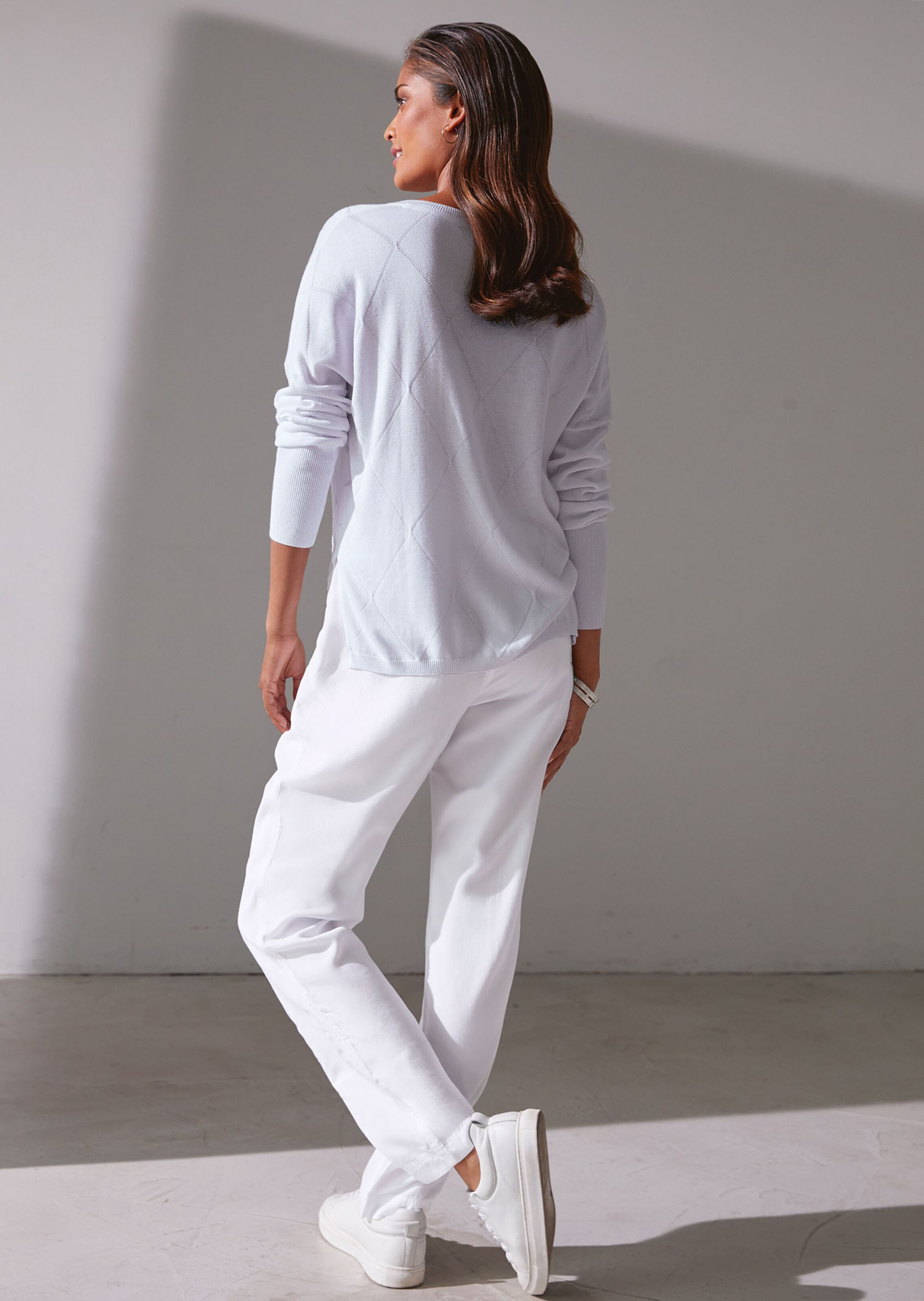 Hosen im Jogg-Pants-Stil sind heiss geliebt und werden überall getragen. Dieses Modell erhält durch die seidig schimmernde Tencelqualität eine edle Note und trägt sich herrlich angenehm. Ein lässiger Style mit vertikaler Teilungsnaht am Vorderbein, schrägen Stecktaschen und Komfortbund mit Zugband. Die Trend-Alternative zur Jeans!