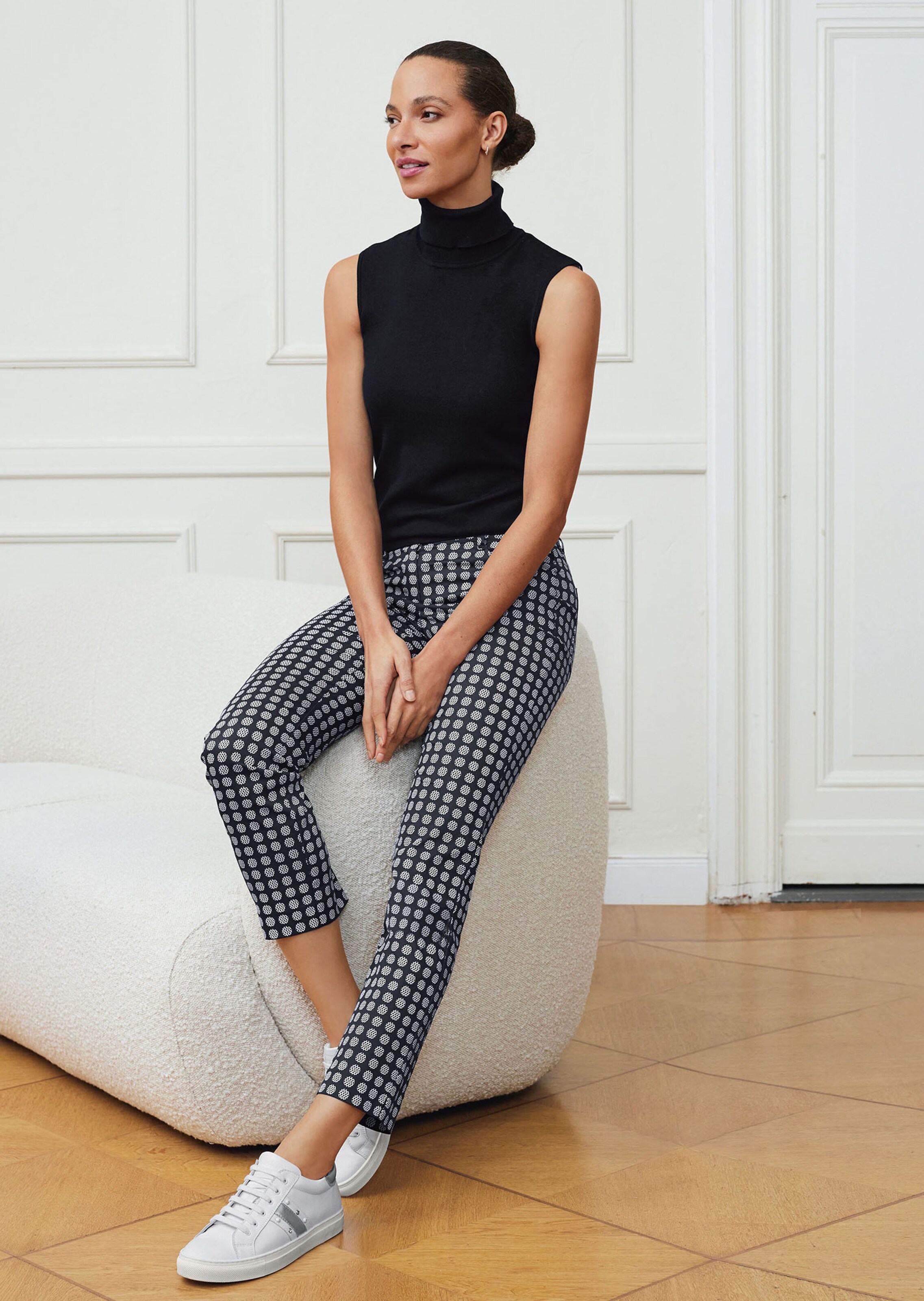 Jedes Teil ein Unikat. In modisch verkürzter 5-Pocket-Form mit geradem Bein, Formbund, Gürtelschlaufen und verdecktem Reissverschluss und Knopfverschluss.