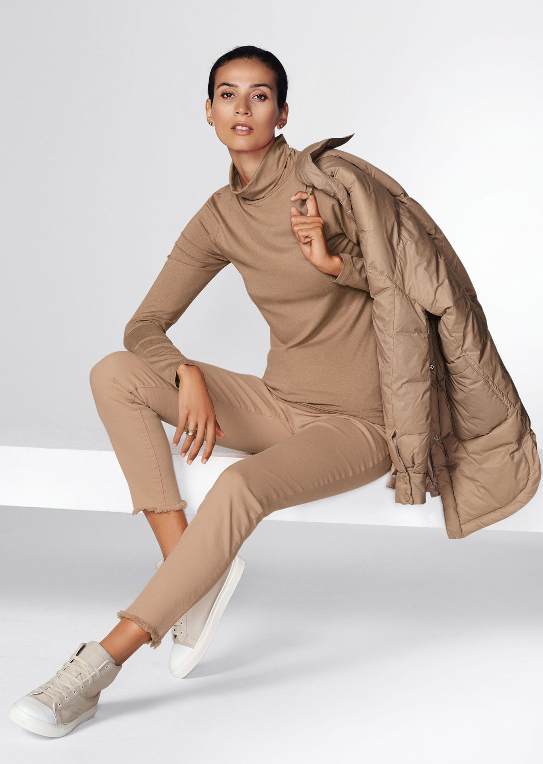 Eine Jeans im Skinny-Fit, die mit angesagten Fransen dem Lässigtrend der Saison folgt. Fransen sind jetzt auch bei Hosen ein grosses Thema und setzen hier einen frechen Akzent. Im aktuellen Five-Pocket-Style und mit schmaler Silhouette zeichnet die enge Jeans eine lange Beinlinie und überzeugt mit gutem Sitz. Formstabil und trageangenehm ist sie eine Allrounderin der unterschiedlichsten Kombinationen und Anlässe. Hochwertig verarbeitet mit MADELEINE-Jeansnieten, Logo-Plakette, Formbund, Gürtelschlaufen und Rückenpasse zeigt sie klassische Details.
