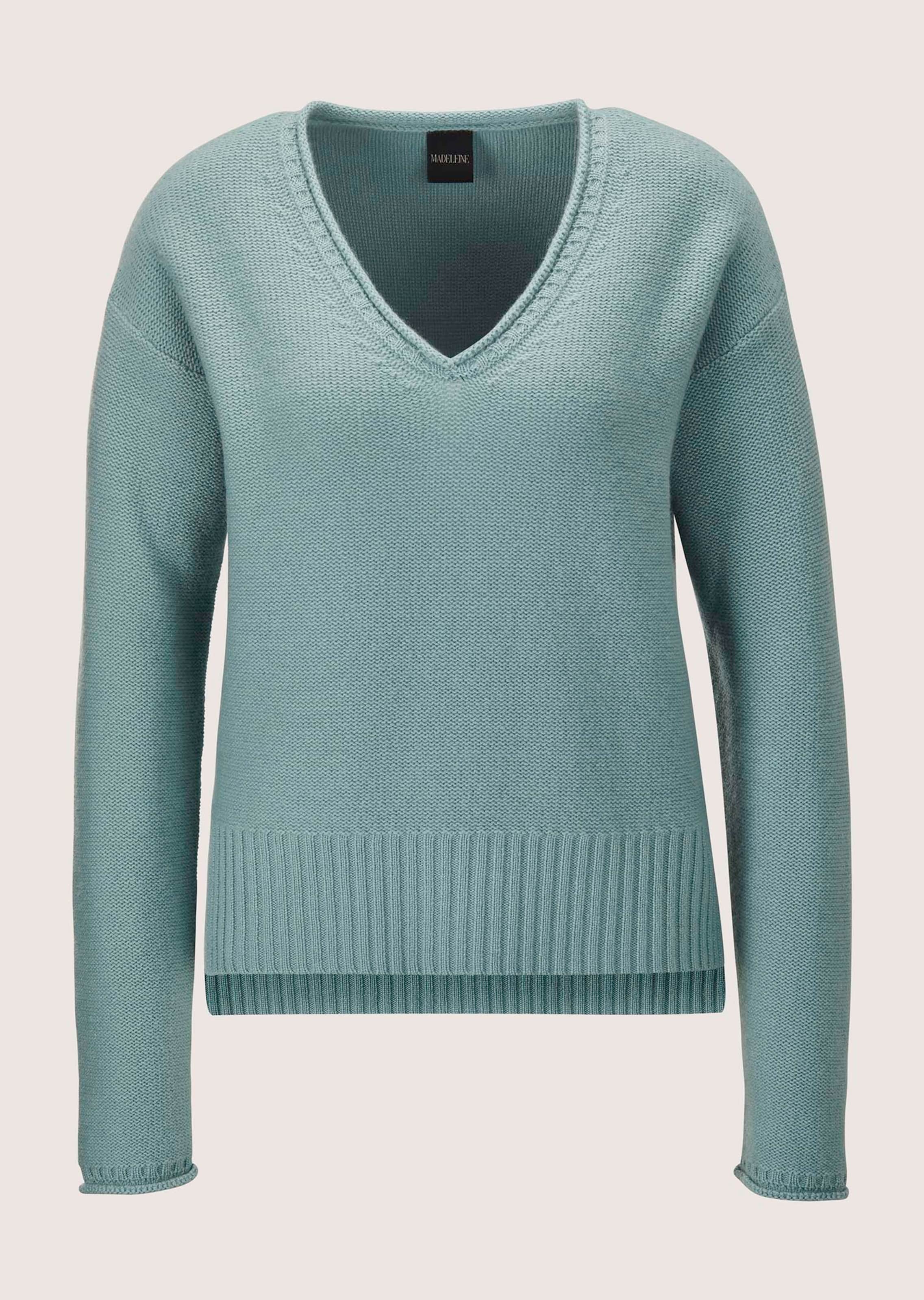 Ein Luxus-Pullover aus reinem Kaschmir, der mit Rollkanten an V-Ausschnitt und langen Ärmeln trendstarke Akzente setzt. Überschnittene Schulterpartien betonen den Tragekomfort des lässig eleganten Looks. Die modisch verlängerte Rückseite, ein breiter Rippenabschluss am Saum und Seitenschlitze verleihen dem Pullover eine selbstbewusste Aussage und machen den Style komplett. Die erstklassig verarbeitete Naturgarn ist kuschelig weich und vielseitig kombinierbar.