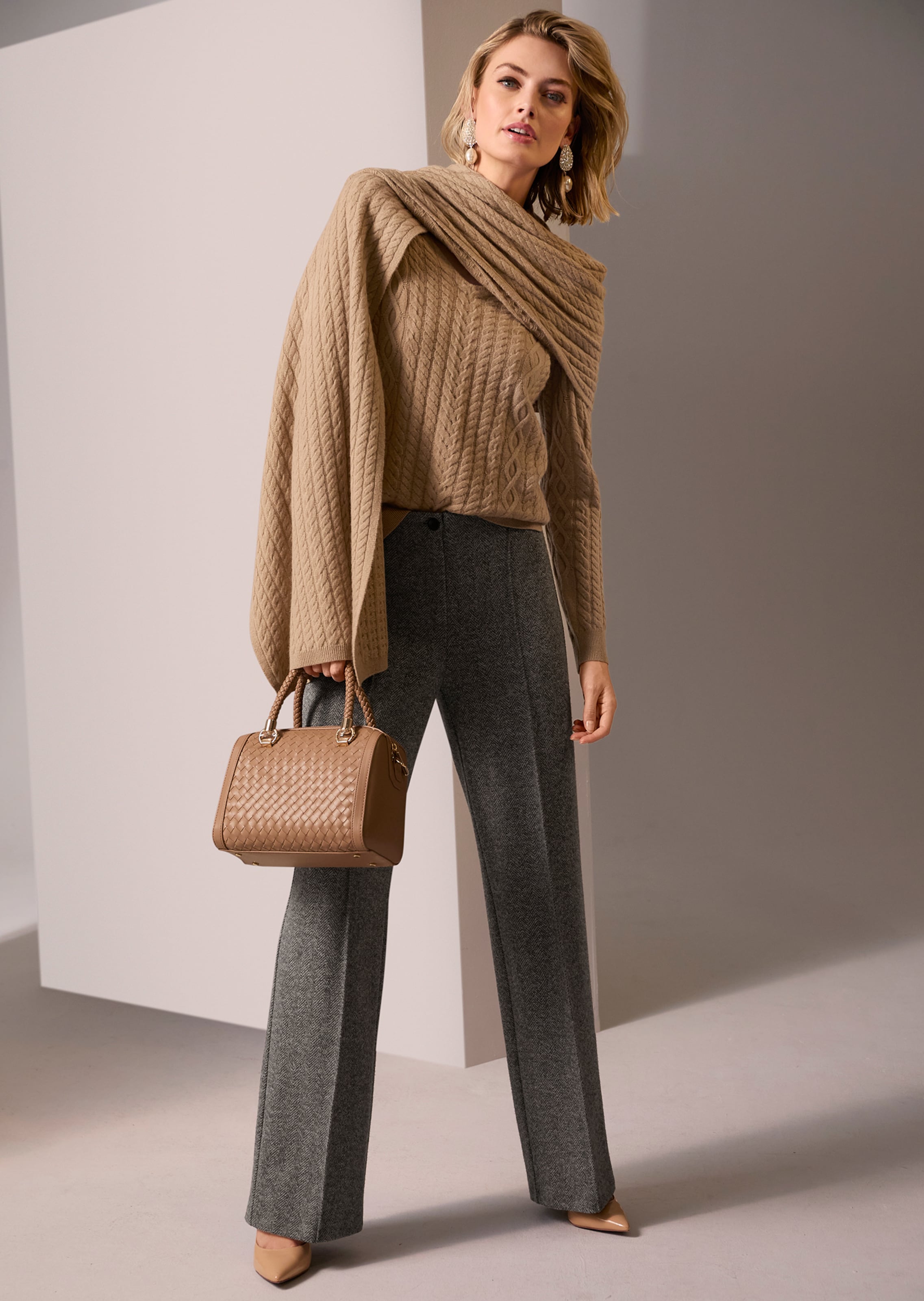 Dieser Luxus-Pullover aus Kaschmir präsentiert sich mit femininem V-Ausschnitt und langen Ärmeln. Sein attraktives Zopfmuster verleiht ihm den trendstarken Look, während Rippenabschlüsse an Ärmeln und Saum für eine perfekte Passform sorgen. Das erstklassig verarbeitete Naturgarn ist kuschelig weich und bietet unvergleichlichen Tragekomfort. Der Kaschmir-Pullover ist vielseitig kombinierbar und ein Muss für jede Garderobe. Erleben Sie die perfekte Kombination aus Modernität und Komfort.