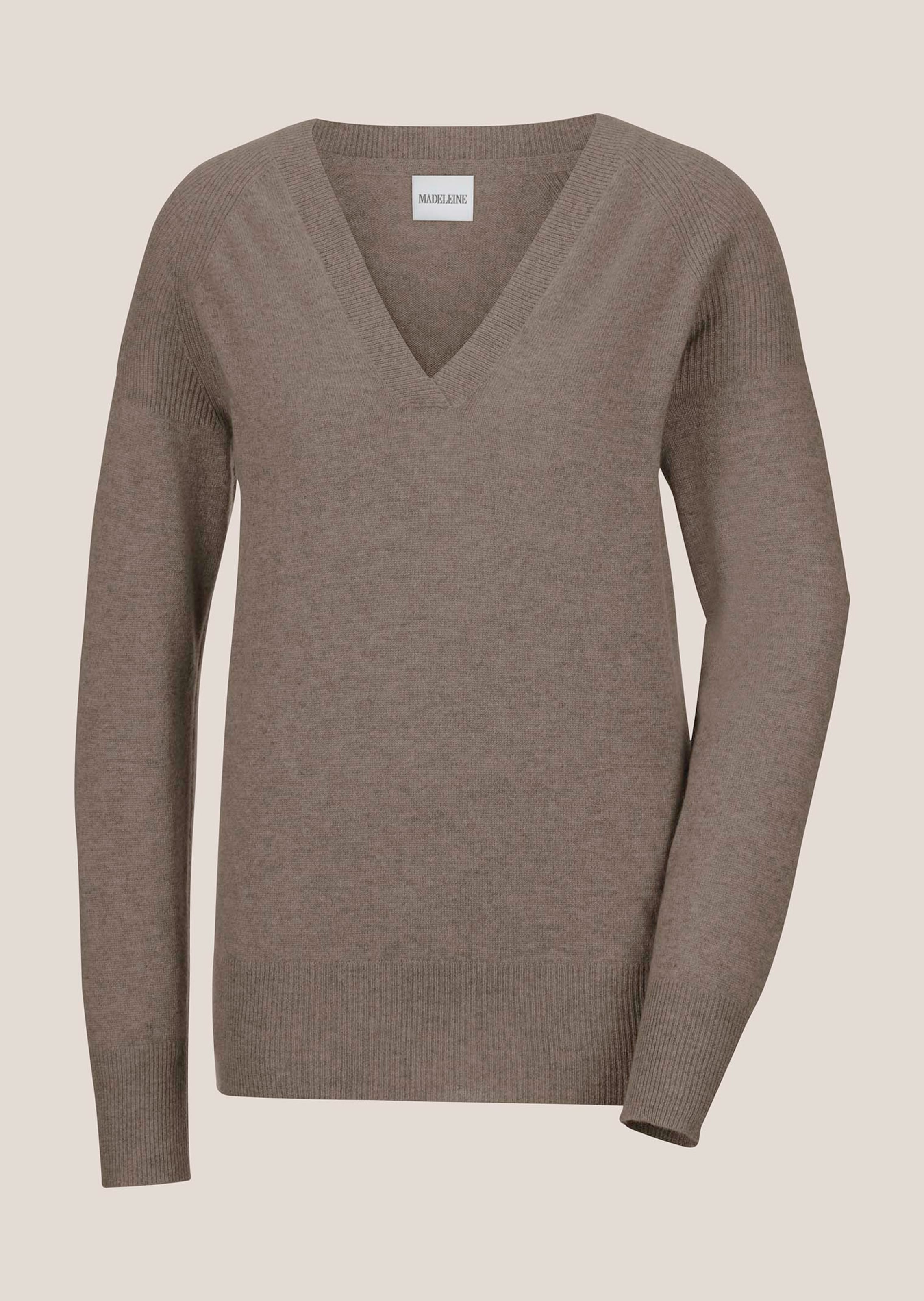 First Class-Strick für viele Gelegenheiten. Das flauschig weiche Tragevergnügen und die wunderbare Leichtigkeit sind das Geheimnis der feinen Kaschmir-Qualität – zweifädig versponnen schenkt sie ein besonders edles Maschenbild. Ein Wohlfühlerlebnis der exklusiven Art! Perfekt für einen edlen Basic-Pullover, an dem Sie bestimmt länger als eine Saison Ihre Freude haben werden. Mit feinen Rippstrick-Partien auf der Schulter sorgt der Pullover auch modisch für das gewisse Etwas. Aufwendig in Form gestrickt zeigt er sich in moderner, lässiger Weite und ist mit überschnittener Schulter, V-Ausschnitt und gerippten Abschlüssen gestaltet.