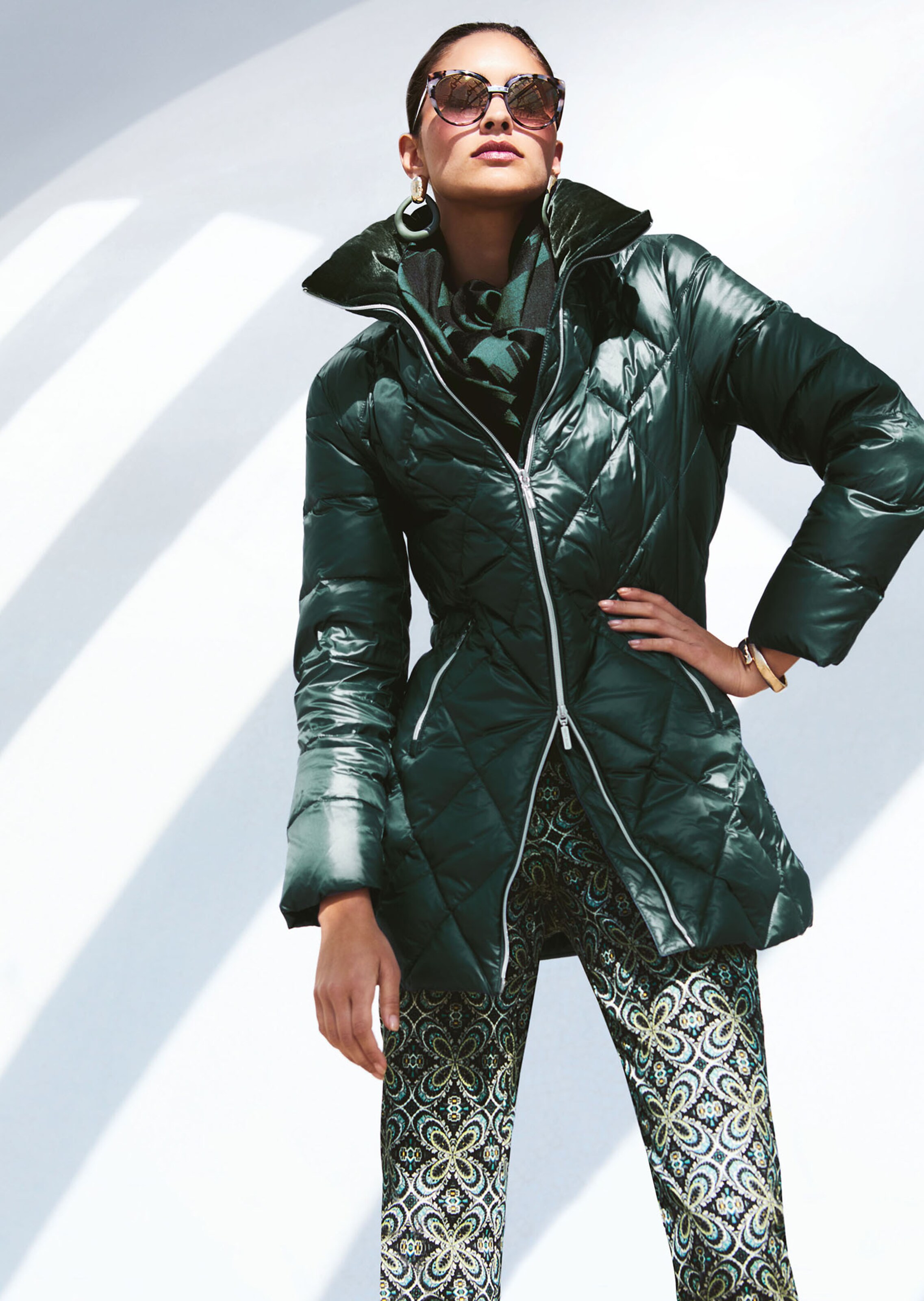 Kuschelige Winterjacken flanieren jetzt in beliebter Longform durch die City. Die lange Steppjacke im Quer- und Rautenstepp trägt sich angenehm wärmend an kühleren Tagen. Die schlanke Longform zeichnet eine schöne, schmale Linie. Mit hohem Kragen, Samt-Innenkragen, 2-Wege Logo-Zipper, Zipper-Paspeltaschen und langen Ärmeln ist sie eine Favoritin für die City und die Natur. Die Brustabnäher, das warme Taschenfutter, eine Logo-Plakette in der hinteren Mitte und das tonige Futter sind weitere, durchdachte Details. Durch ihre Farbgebung können Sie die Jacke auch prima zu Denim kombinieren. Eine kuschelige Daunenjacke, die Sie stilvoll durch den Winter begleitet.