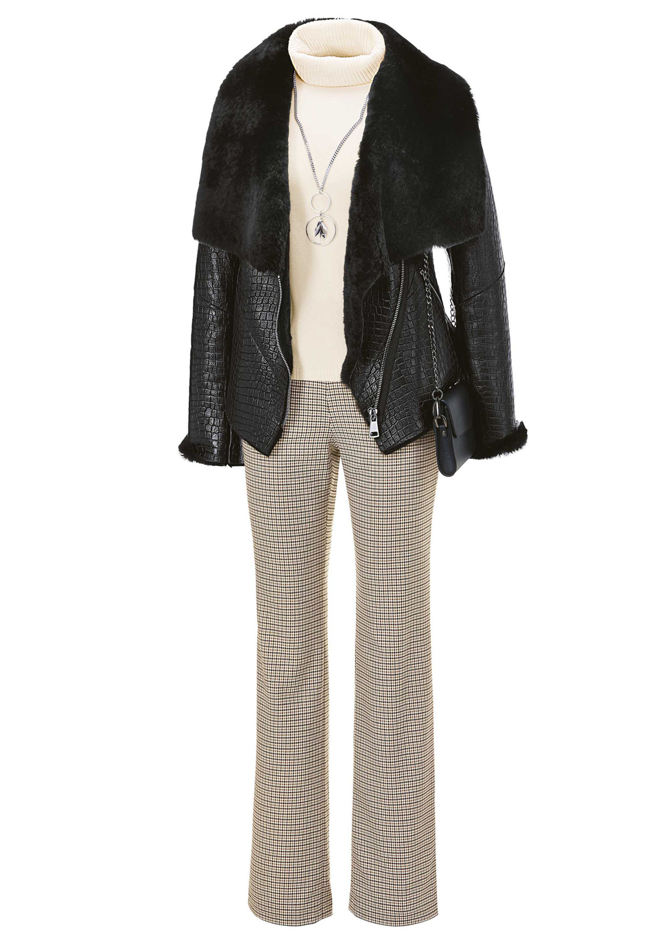 Die weite Palazzo-Linie und das dezente Karomuster verleihen der Hose auf den ersten Blick einen klassischen Auftritt. Durch ihren modisch erhöhten Sitz in der Taille, auch »high waist« genannt, beweist sie Trendgespür und avanciert zu einem echten Figurschmeichler. Perfekt verarbeitet zeigt sich die Karohose mit schrägen Einschubtaschen, verdecktem Seitenzipper und Formbund mit Innenbundsicherung und tonigen Gürtelschlaufen. In hochwertiger Komfort-Qualität trägt sie sich Sommer wie Winter herrlich angenehm und ist auch für die Reise bestens geeignet. Das eingearbeitete Halbfutter unterstreicht den schönen, weich fliessenden Fall. Eine stilvolle Kombipartnerin für jede Gelegenheit – ob korrekt im Business oder lässig elegant in der City.