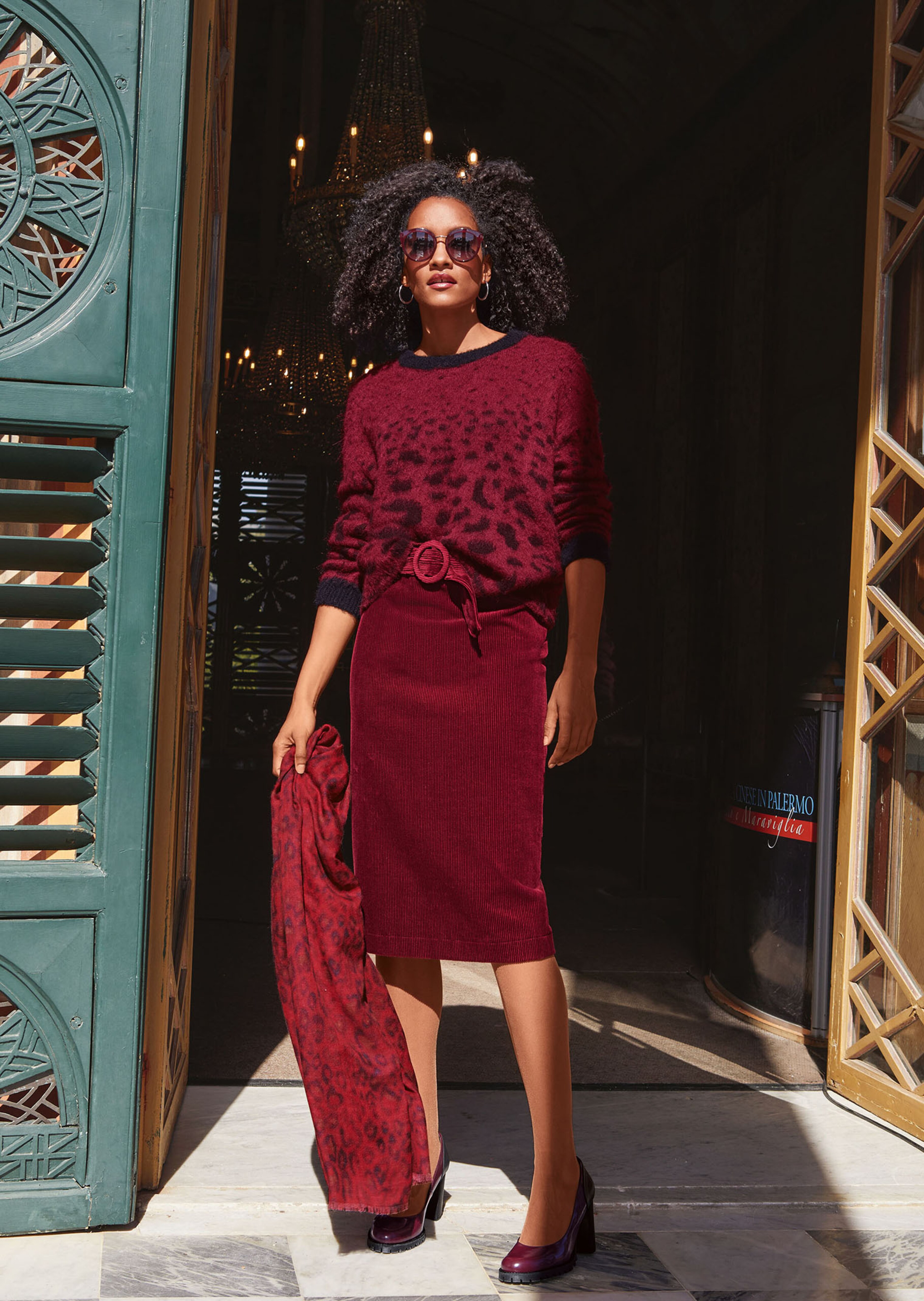 Dieser Leo-Look überzeugt mit seiner edlen, italienischen Garnmischung. Der hohe Anteil an Alpakafasern ist für seine typisch haarige Optik verantwortlich und verleiht ein angenehmes Tragegefühl. Der lässige Fit, mit überschnittenen Schultern und den langen Ärmeln machen Ihn zum Lieblingsteil ihrer Garderobe. Die Rippenabschlüsse in Kontrastfarbe runden den Style ab und machen den Pullover zum IIt-Piece der Saison.