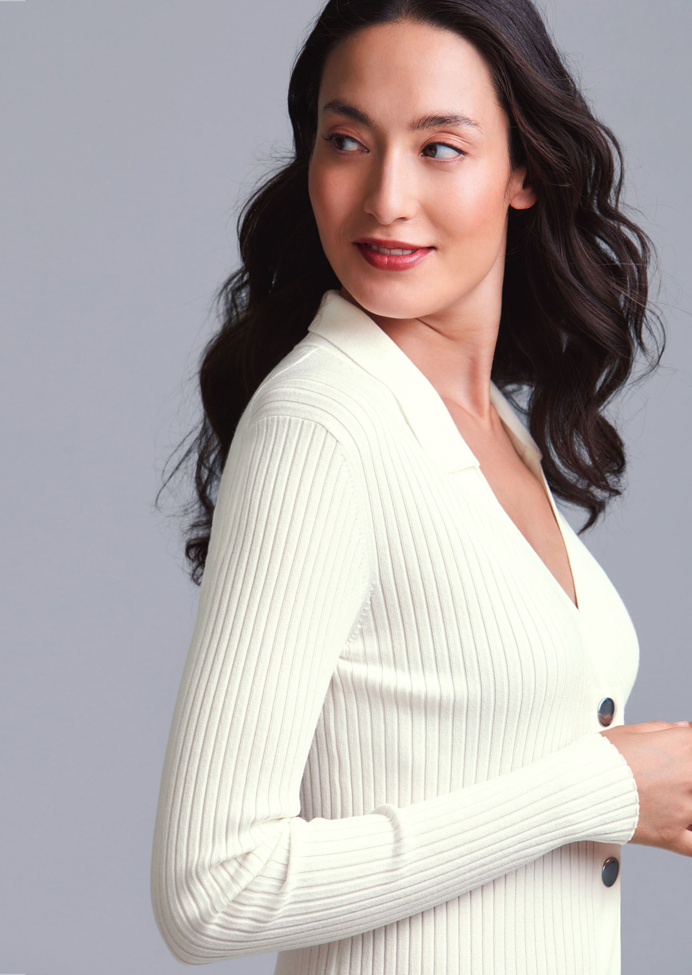 Ein Cardigan, der mit seinem Purismus und mit seiner edlen Qualität überzeugt. Die schlichte Strickjacke in schlanker, taillierter Longform zeichnet eine schöne, schmale Linie. Der elastische Rippstrick im Viskose-Mix trägt sich äusserst angenehm. Ausgestattet ist sie mit V-Ausschnitt, Hemdkragen, silberfarbener Druckknopfleiste, Ripsband und französischer Schulterverarbeitung. Ob im Business, Home-Office oder privat: Die edle Strickjacke ist eine Allrounderin.