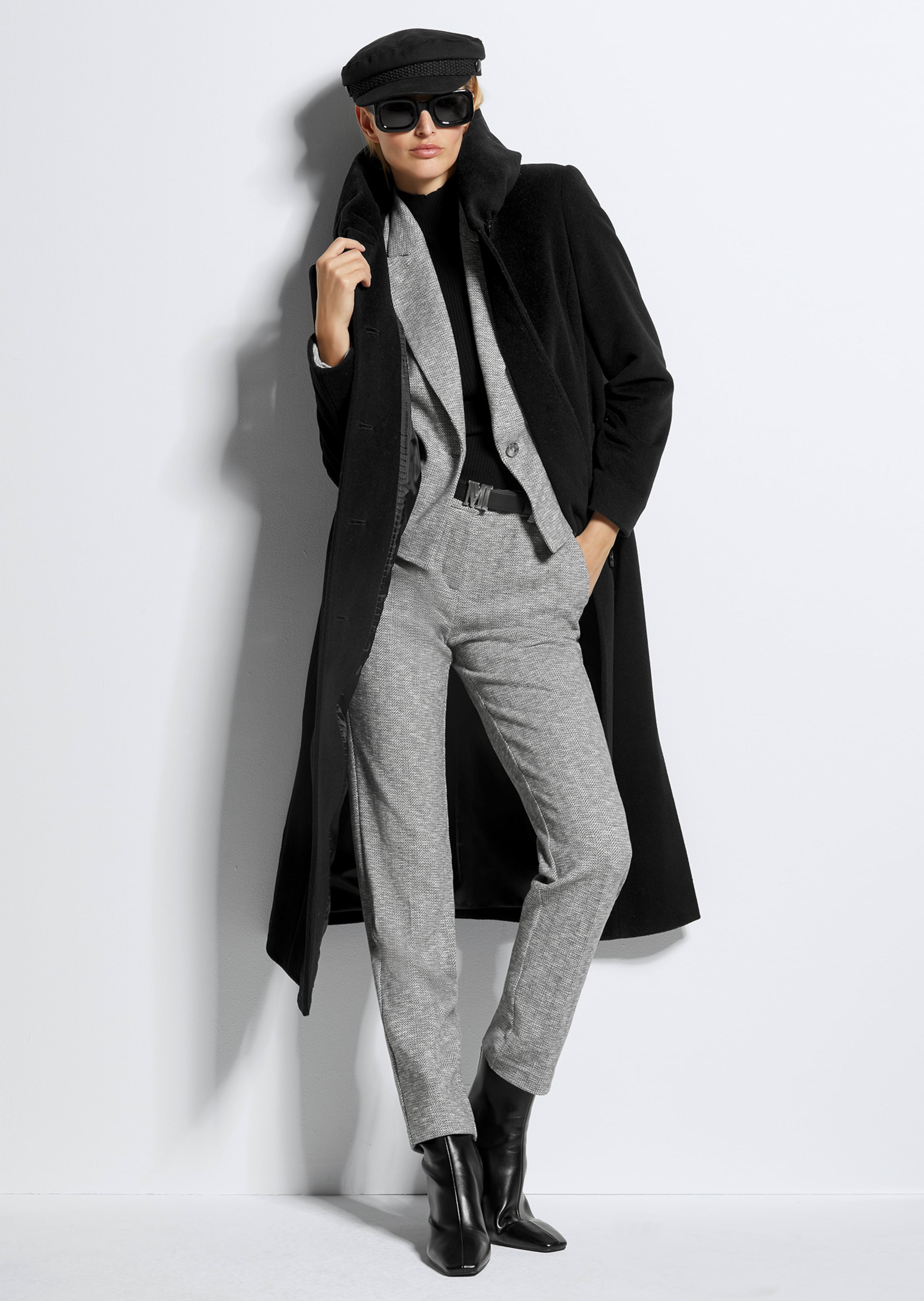 Eine Hose in edler Optik, die Kombinationen von formell bis elegant souverän begleitet - aber durchaus auch modisch gestylt werden kann. Die trageangenehme Garnmischung der schlanken Hose ist dank Stretch-Anteil super bequem und macht jede Bewegung mit. Bügelfalten an Vorder- und Rückseite sorgen für die gepflegte Note und sind ideal für souveräne Auftritte. Der Formbund mit Gürtelschlaufen sitzt komfortabel auf der Hüfte, während seitliche Schubtaschen für Stauraum sorgen.