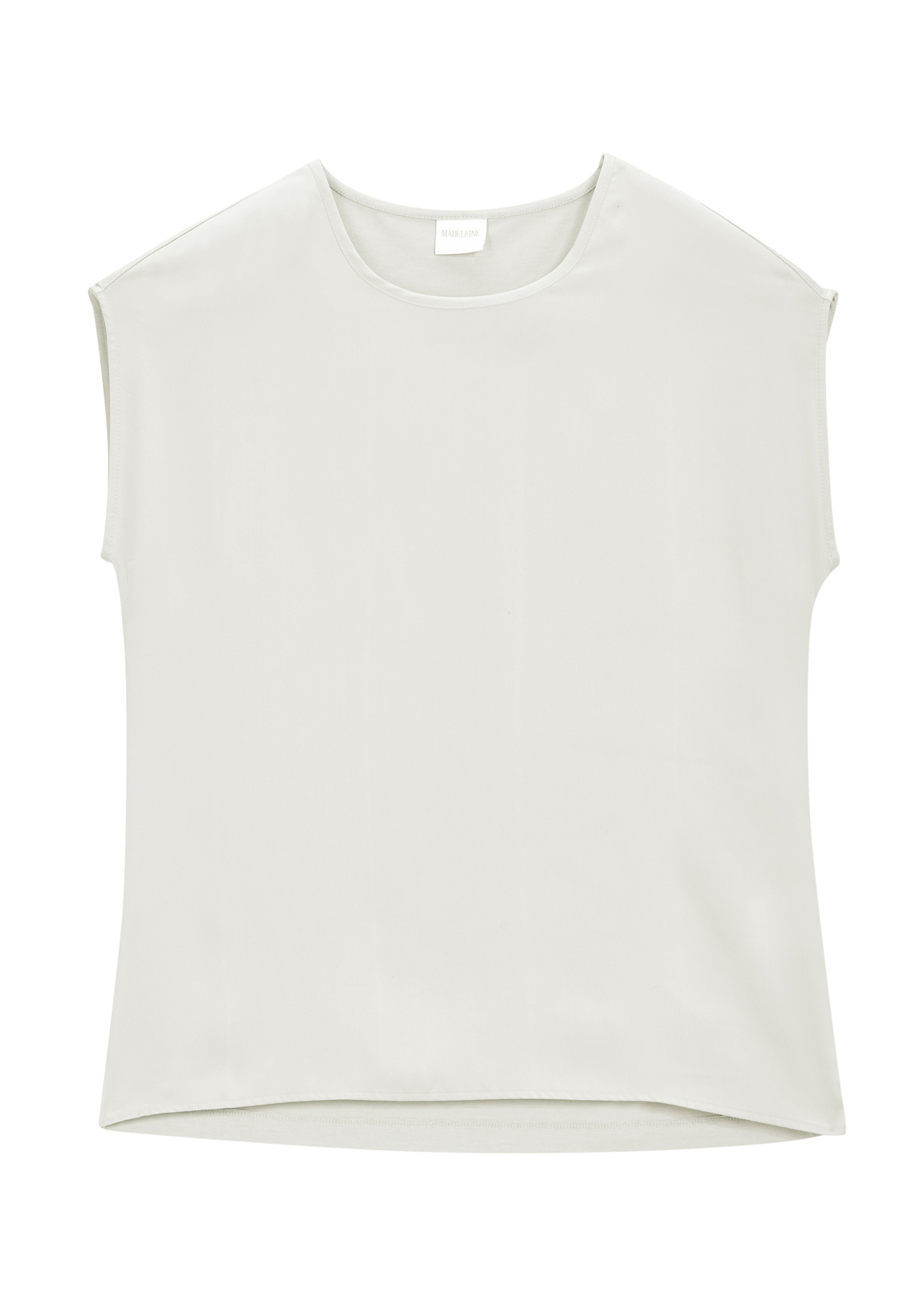 Ein angenehm kühles Shirt, das mit seiner edlen Optik, seinem Tragekomfort und seiner Herstellung überzeugt. Das nachhaltige Shirt in lässiger, kastiger Form wirkt so edel durch die dezent schimmernde Webware im Vorderteil. Rückseitig ist es aus elastischem, nachhaltigem Viskose-Jersey gestaltet. Seine LENZING™ ECOVERO™ Viskosefasern werden aus nachhaltigem Holz und Zellstoff gewonnen und stammen aus zertifizierten und kontrollierten Quellen gemäss den strengen Richtlinien der Lenzing Holz- und Zellstoffpolitik. Wir haben es ärmellos mit überschnittenen Schultern und Rundhalsausschnitt gestaltet.