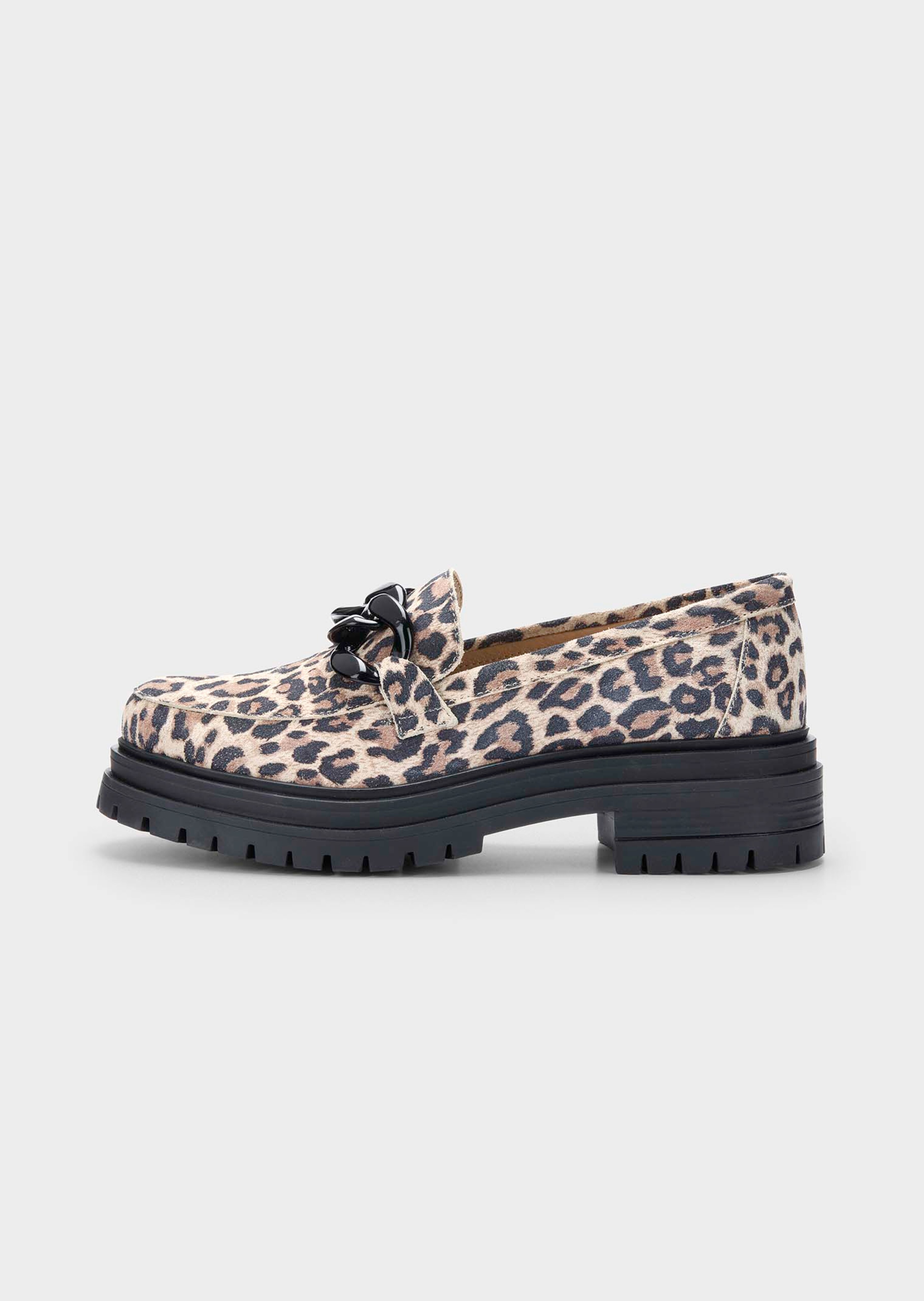 Bei diesem Modell trifft angesagter Animal-Print auf eine markante Schmuckkette, die harmonisch zur farbigen Sohle passt. Ein Schuh, der „Fashion“ schreit und dabei überraschend bequem bleibt: Der kleine Absatz verleiht eleganten Schwung, und die rutschfeste TR-Laufsohle sorgt für sicheren Halt. Mit diesem Leo-Slipper aus samtigem Veloursleder werden Sie zum Star im Style-Dschungel!