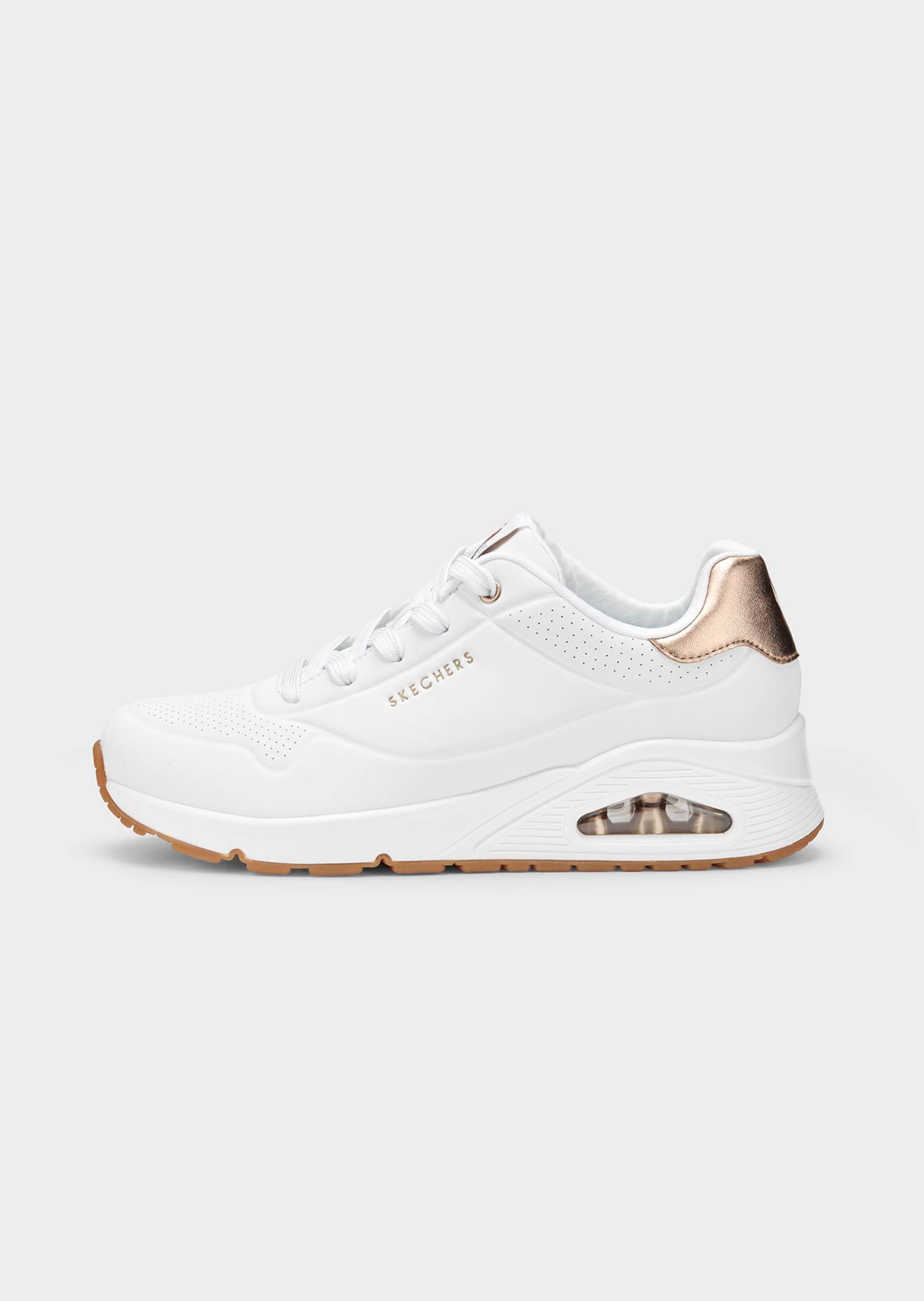 Die roségoldfarbenen Akzente machen diesen klassischen SKECHERS-Sneaker zu einem modischen Hingucker. Die luftgepolsterte Skech-Air-Zwischensohle sorgt für ein federleichtes Tragegefühl – fast, als würden Sie auf Wolken laufen. Ergänzt wird der Komfort durch die Air-Cooled-Memory-Foam-Innensohle, die optimale Druckentlastung und Atmungsaktivität bietet. Mit Schnürverschluss, griffiger Gummi-Laufsohle und einem praktischen Wechselfussbett ist dieser Sneaker die perfekte Wahl für Freizeit, Sport und Urlaub.