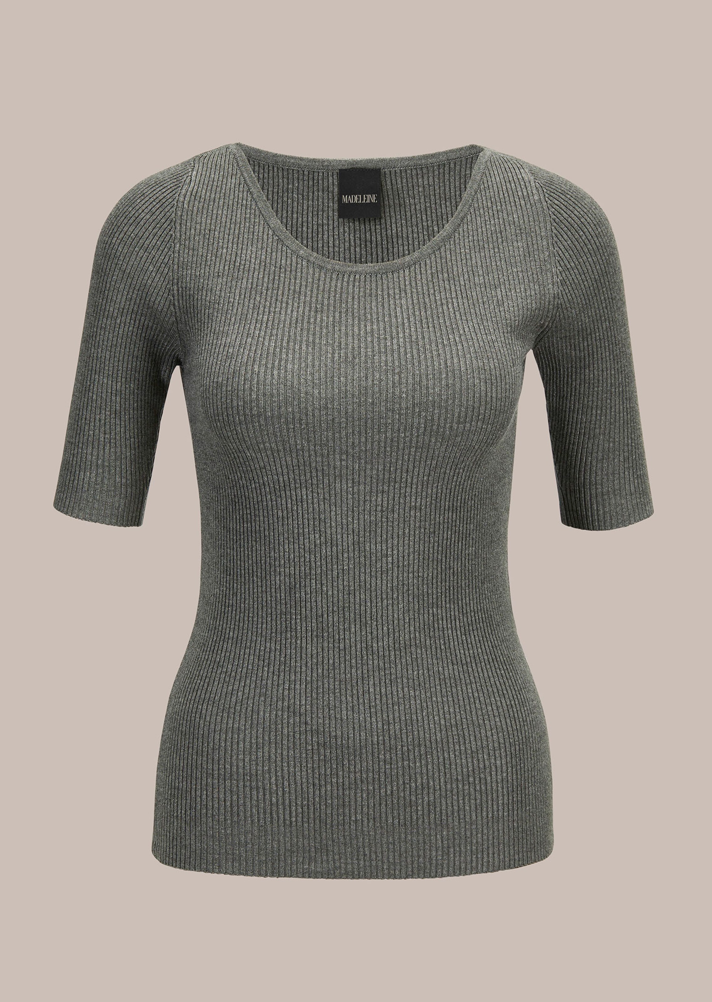 Der Sommerpullover aus Viskosestretch: ein geschmeidig weicher Basic-Pullover der gehobenen Damengarderobe. Der formaktive Mix aus Viskose und Elasthan gibt dem Pullover die edle Ausstrahlung und den hohen Tragekomfort, gleichzeitig ist er angenehm kühl, supersoft und anschmiegsam. Mit Rundhals-Ausschnitt und kurzen Ärmeln zeigt er sich in sommerlicher Version. Die feine Rippstruktur unterstreicht den geschmeidigen Charakter.