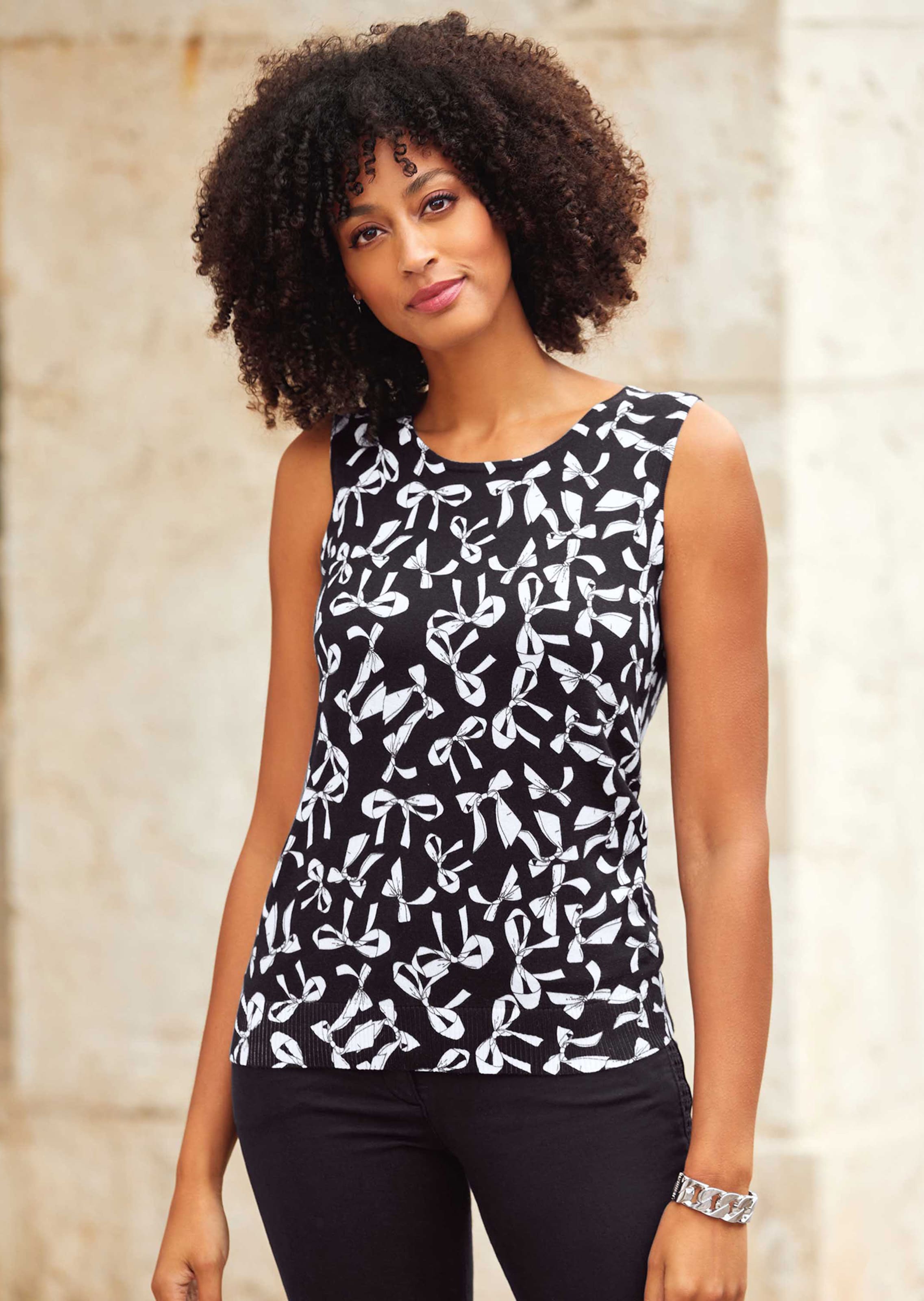 Das Stricktop mit Schleifen im Print gibt Ihrem Styling das feminine Extra. Der Glattstrick im Baumwoll-Viskose-Mix trägt sich schön angenehm auf der Haut. Der platzierte Druck in Klassikfarben verleiht zeitlose Eleganz. Kombinieren Sie es lässig oder elegant – ganz nach Anlass.