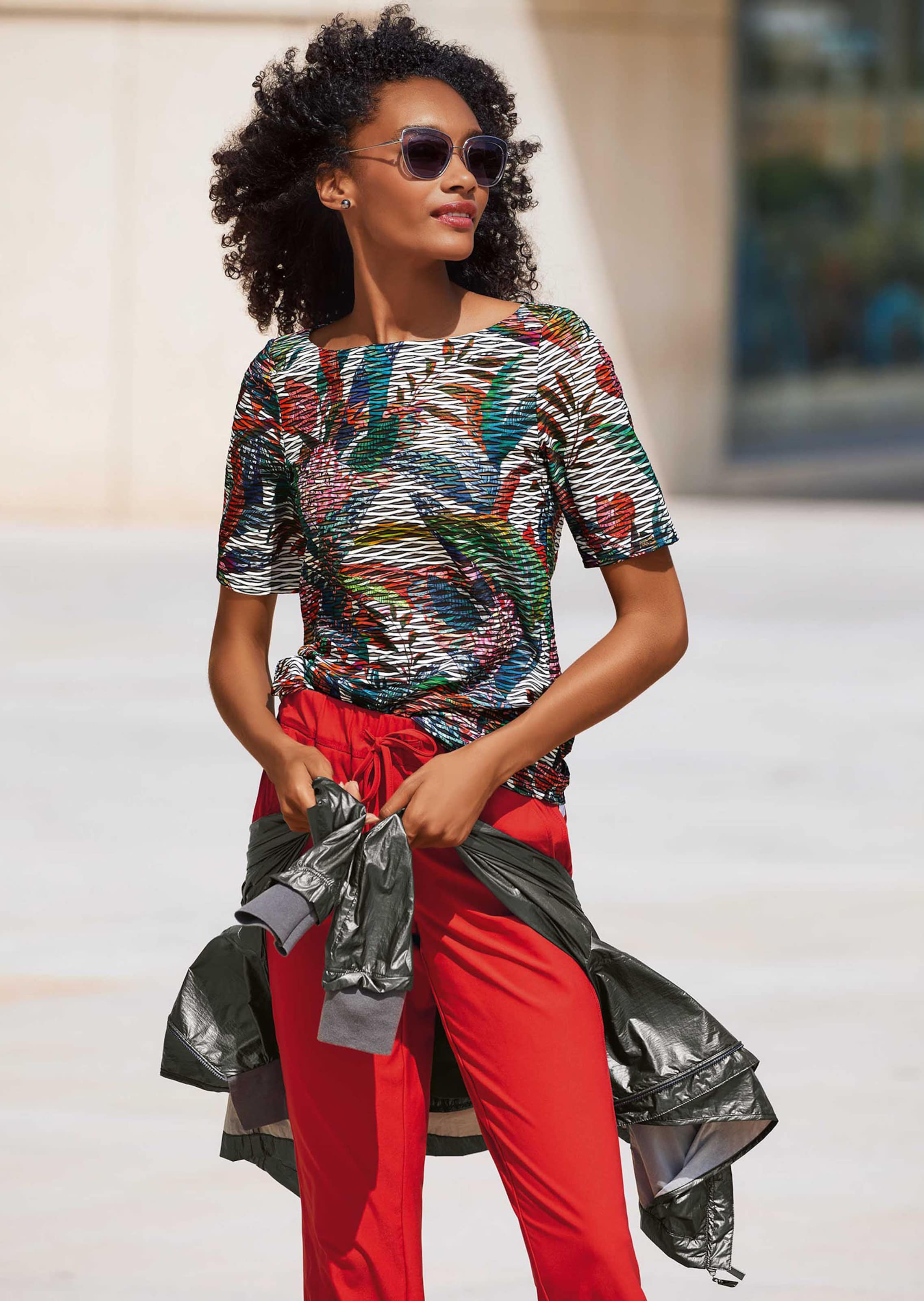Ein fantastischer Effekt: Das Strukturshirt aus raffinierter, bedruckter Strukturware ist leicht transparent. Der fantasievolle Artprint macht aus jedem Stück ein Unikat. Dank seiner Vielfarbigkeit können Sie das Shirt vielseitig kombinieren - zu gedeckten oder leuchtenden Farben. Die unkomplizierte Stretchqualität ist angenehm elastisch. Der schlanke Style ist mit schmalem Kurzarm und U-Boot-Ausschnitt gestaltet.