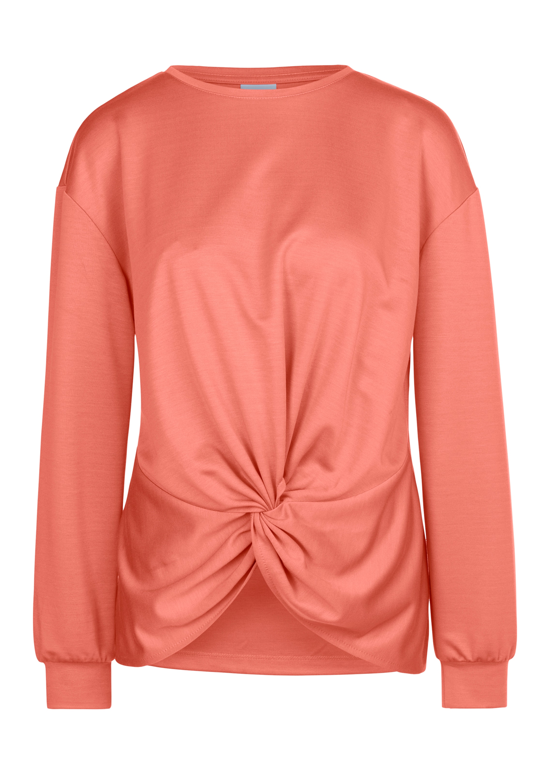 Bleiben sie modisch flexibel und auf jeden Anlass vorbereitet. Dieses Sweatshirt überrascht mit einem Plus an Modernität und zieht durch den markanten, vorderseitigen Knoten-Effekt trendbegeisterte Blicke an. Die stylische Shirt-Variante ist bequem und angenehm auf der Haut und kann sowohl leger, als auch modisch elegant kombiniert werden. Leger geschnitten umspielt sie locker die Figur uns ist ganz klassisch mit Rundhals-Ausschnitt, überschnittenen Schultern und langen Ärmeln gearbeitet. Die Ärmel schliessen mit elastischen Bündchen ab und machen den Look komplett.