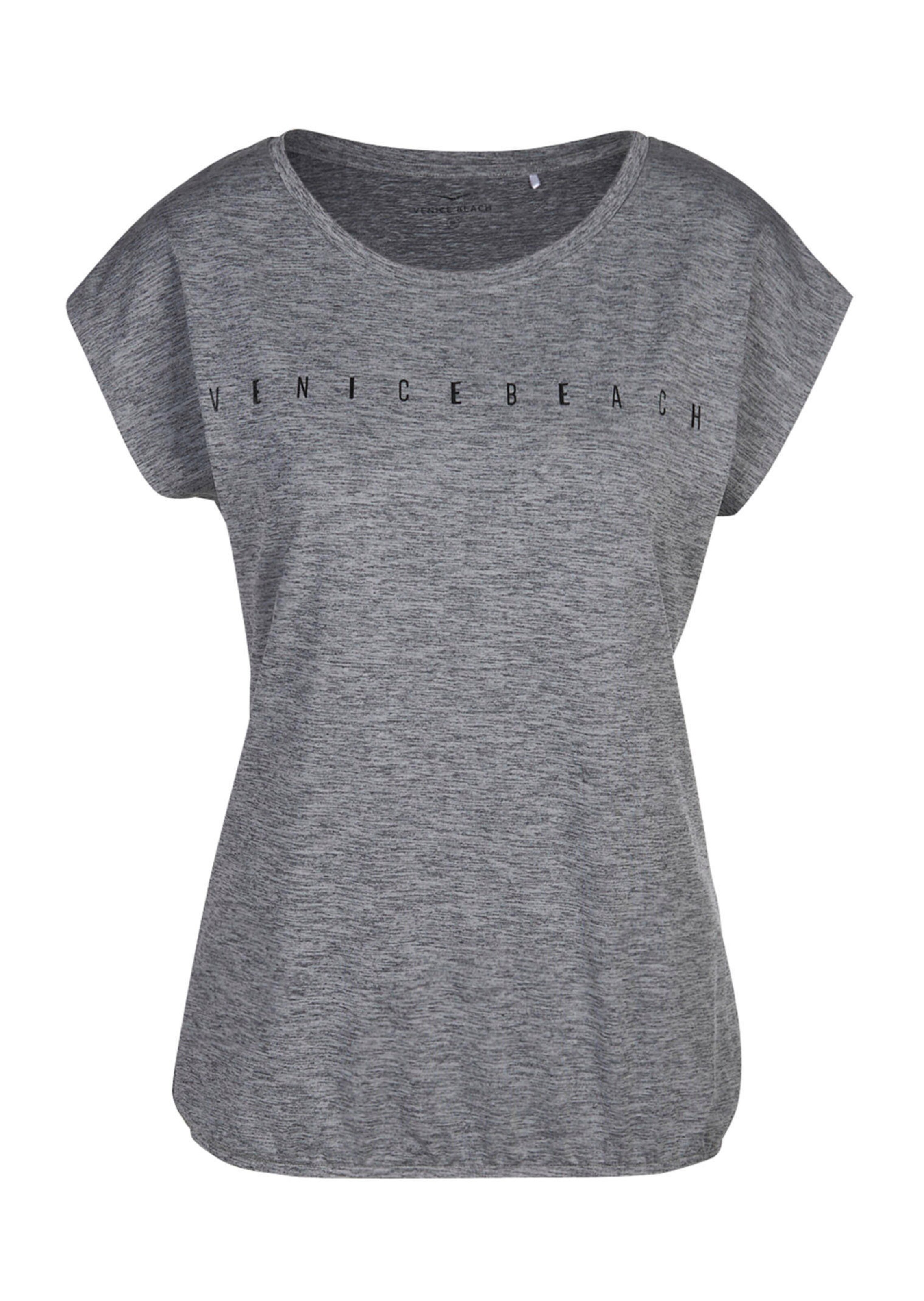 Unkompliziert, praktisch und feminin präsentiert sich das T-Shirt "Wonder" von VENICE BEACH. In figurumspielender Passform sitzt es luftig und angenehm beim Sport, das Funktionsmaterial transportiert die Feuchtigkeit weg und sorgt für bestes Tragegefühl. Mit Rundhalsausschnitt und überschnittenen Schultern ein schönes Basic-Teil, das sich dank Gummizug am Saum in der Länge regulieren lässt. Mit Logoprint im Vorderteil. Länge in Gr. M ca. 60 cm.