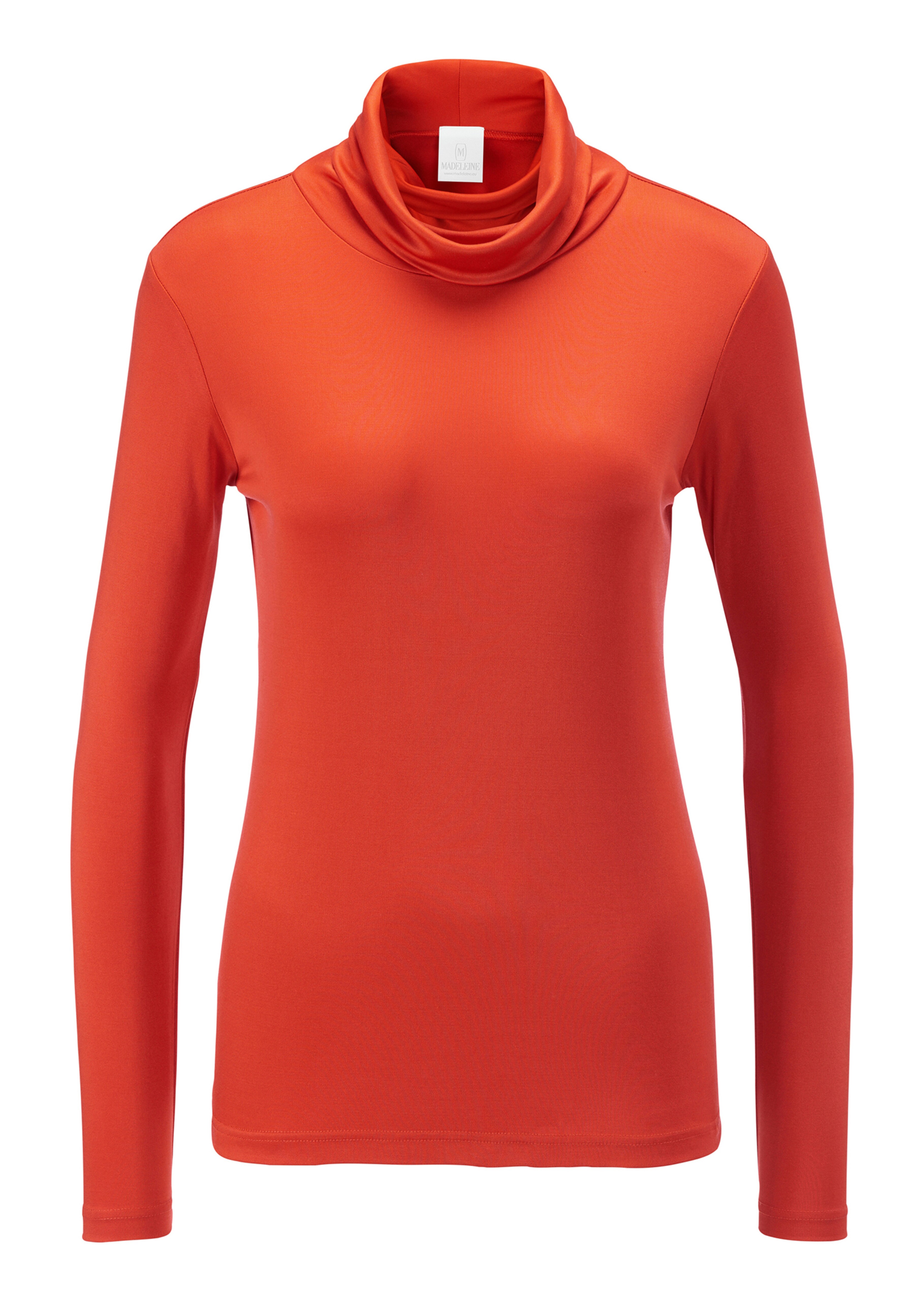 Shirts sind ein wichtiger Bestandteil jeder Kombi-Garderobe. In edlem Seiden-Jersey sorgt dieses Shirt für ein Mode-Erlebnis der luxuriösen Art. Die fein glänzende Qualität begeistert durch ihren geschmeidigen Fall und einzigartigen Verwöhncharakter. Leicht tailliert im Schnitt besticht das Seidenshirt mit klarem Stil und ist mit Rollkragen und langen Ärmeln verarbeitet. Ein exquisites Basic, das sowohl als Solist oder als passendes Darunter Wirkung zeigt. Seine Style-Vielfalt ist unendlich – von legeren Casual-Looks bis cleanen Business-Varianten.
