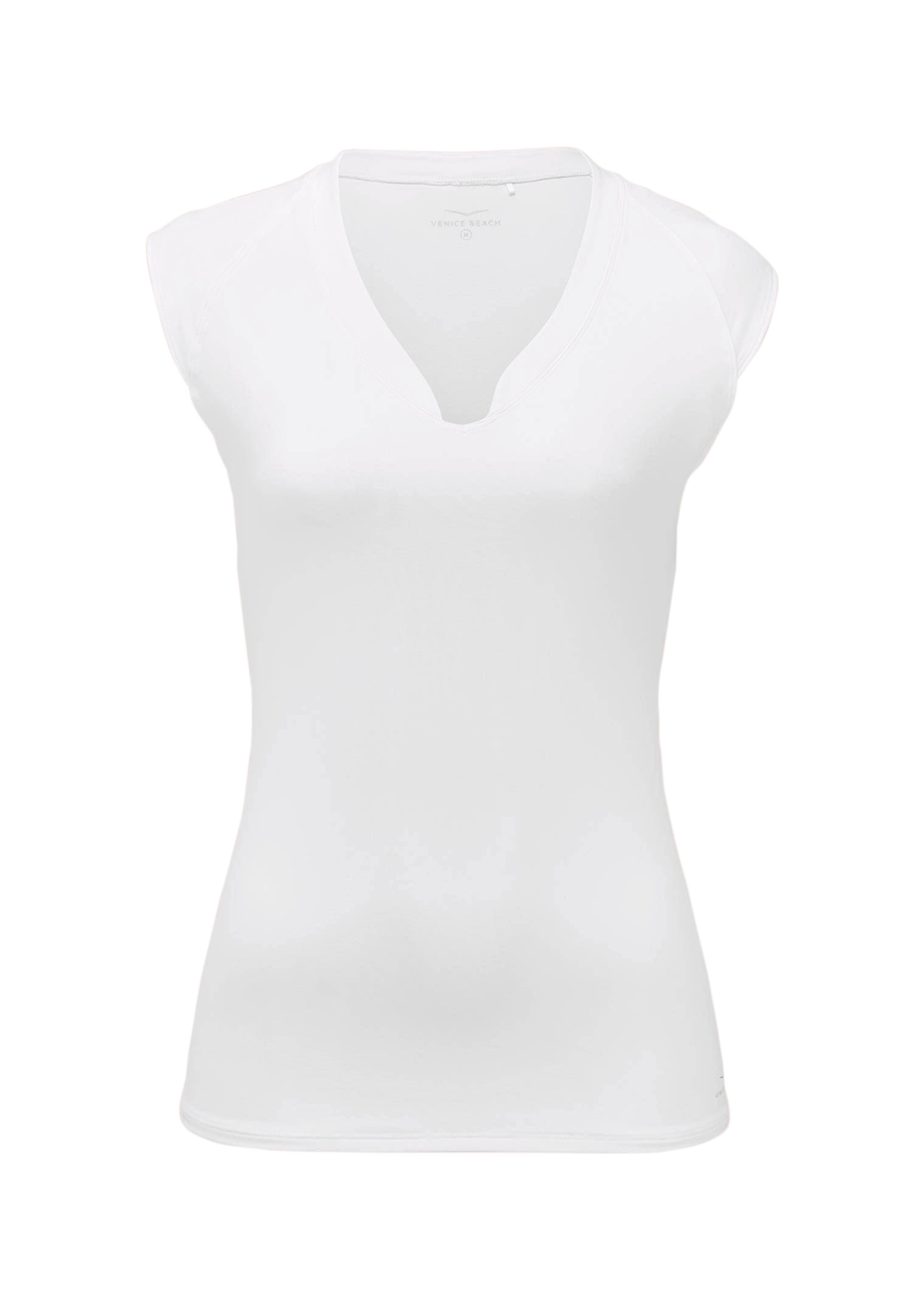 Ein Shirt, das Freizeit und Sportlichkeit mühelos vereint: VENICE BEACH präsentiert ein ärmelloses Modell mit Stehkragen, der in einen V-Ausschnitt übergeht. Die überschnittenen Schultern und das weiche Jersey mit Elasthananteil garantieren Bewegungsfreiheit und einen bequemen Sitz, das Markenlogo setzt einen modischen Akzent.