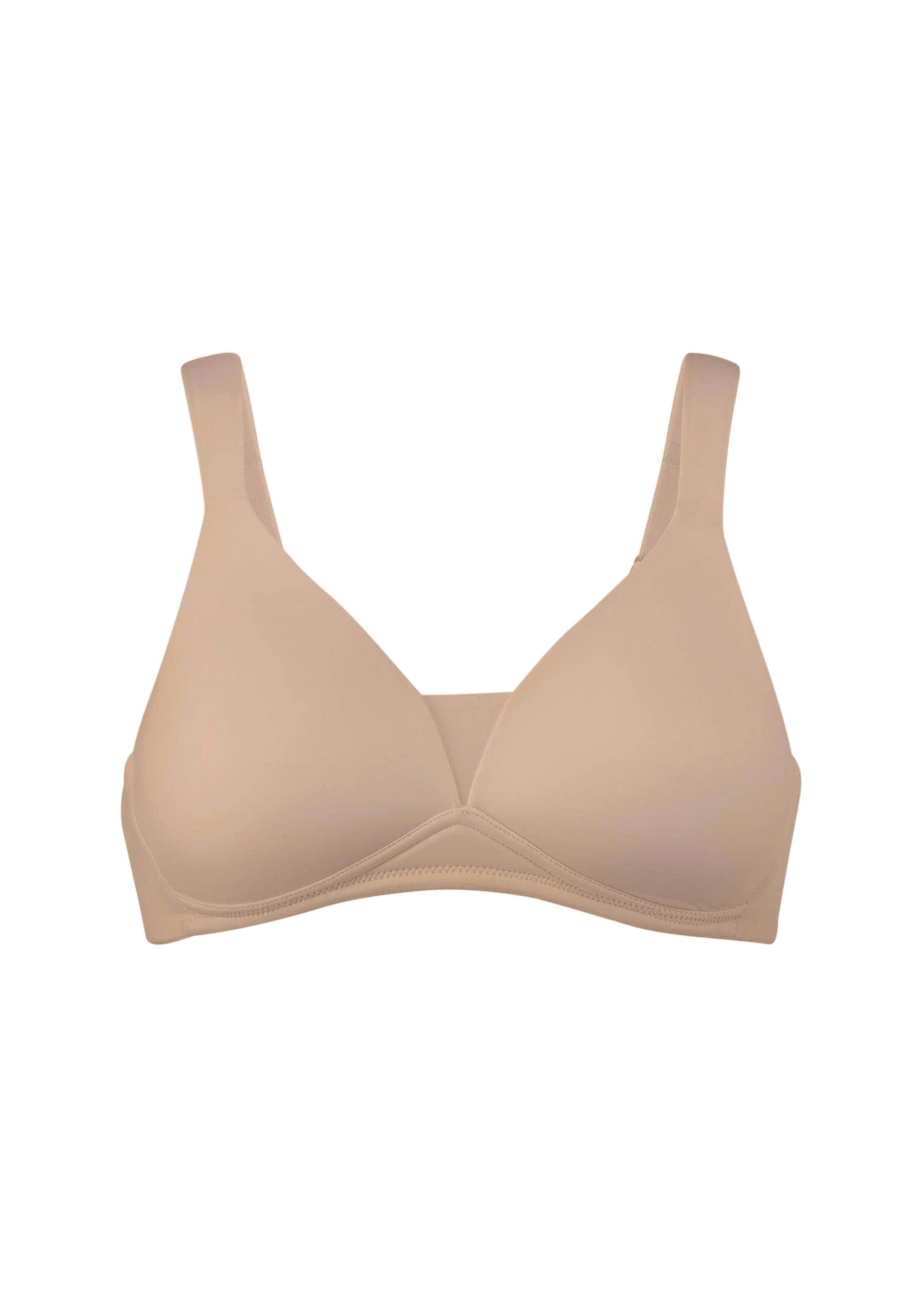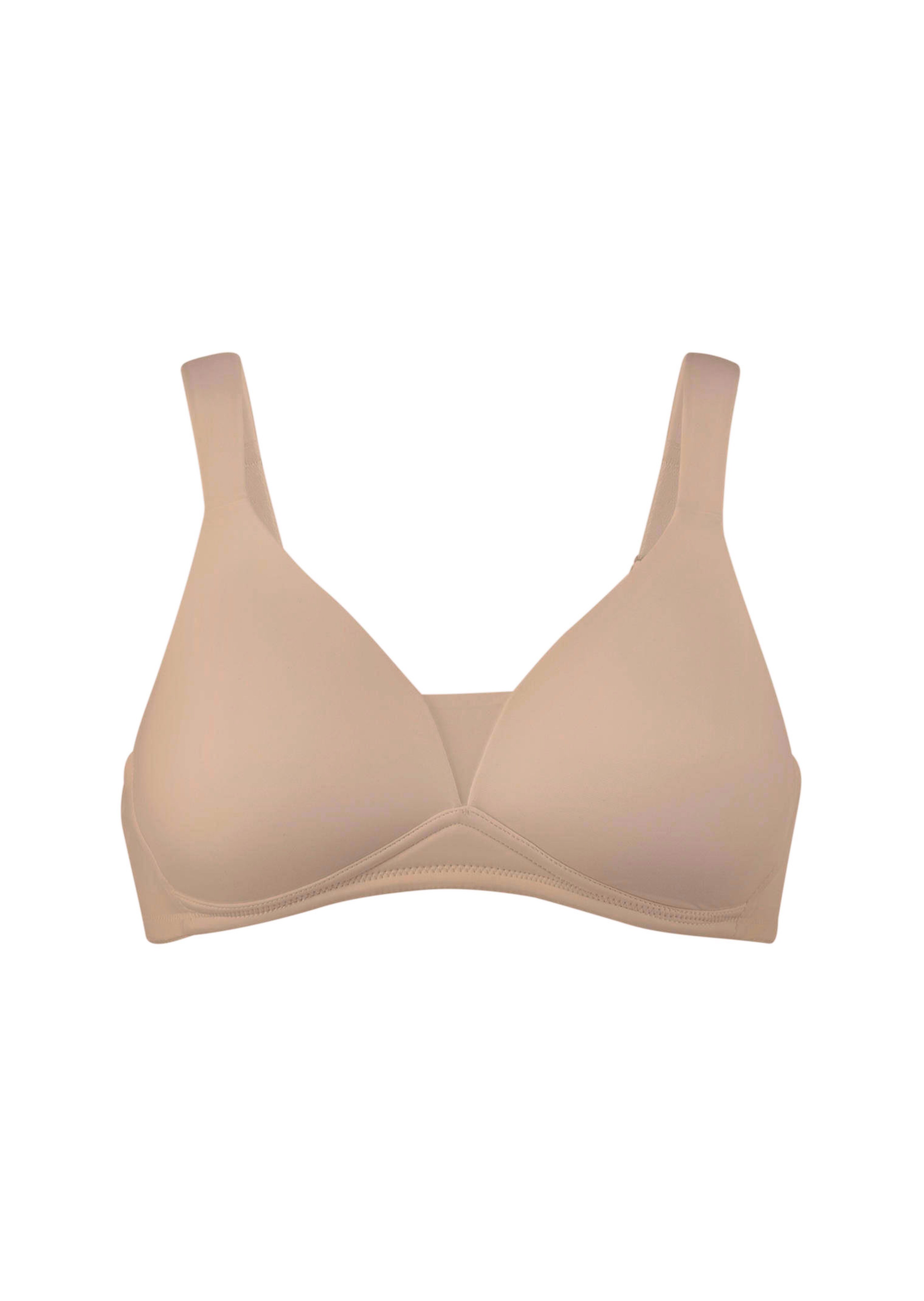 Bügelloser BH mit Softschalen von VIANIA. Gemoldete Cups geben eine schöne Form, ein dekorativer Ring in der vorderen Mitte dient als Blickfang. Breite, verstellbare Entlastungsträger bringen besten Komfort auch in großen Größen. Weich und komfortabel aus einem trageangenehmen Materialmix.