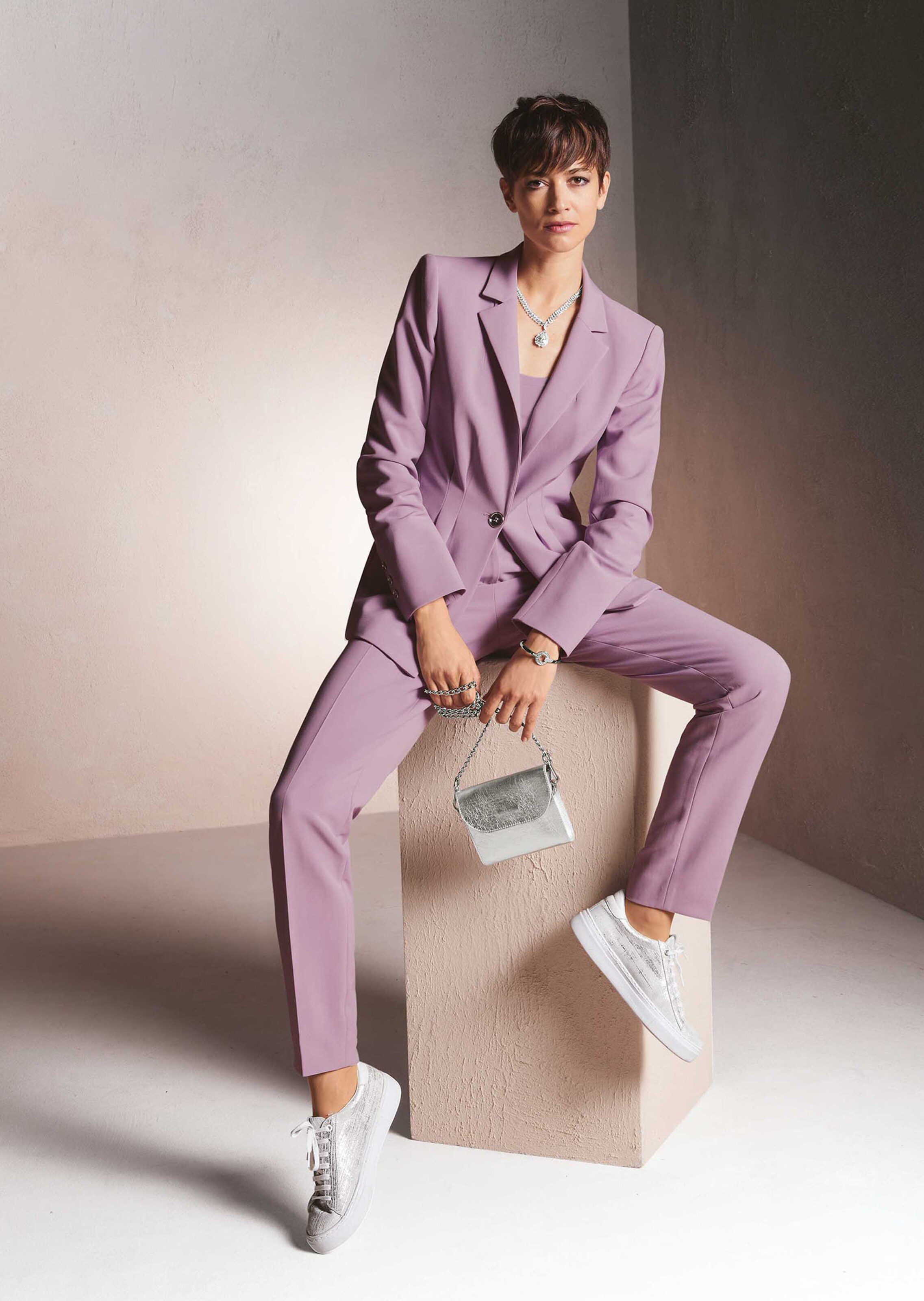 Ein Fashionblazer, der mit seiner femininen Aussage begeistert. Der Blazer mit Falten im Vorderteil zeichnet eine wunderbar weibliche Silhouette. Der Viskose-Mix trägt sich angenehm und wirkt sehr edel. Ausgestattet ist er mit Reverskragen, Kragensteg, Knopfverschluss, Nahttaschen, Aufhängerschlaufen, Langarm und Ärmelknopfleiste. Schulterpolster verleihen ihm auf dezente Weise Kontur.