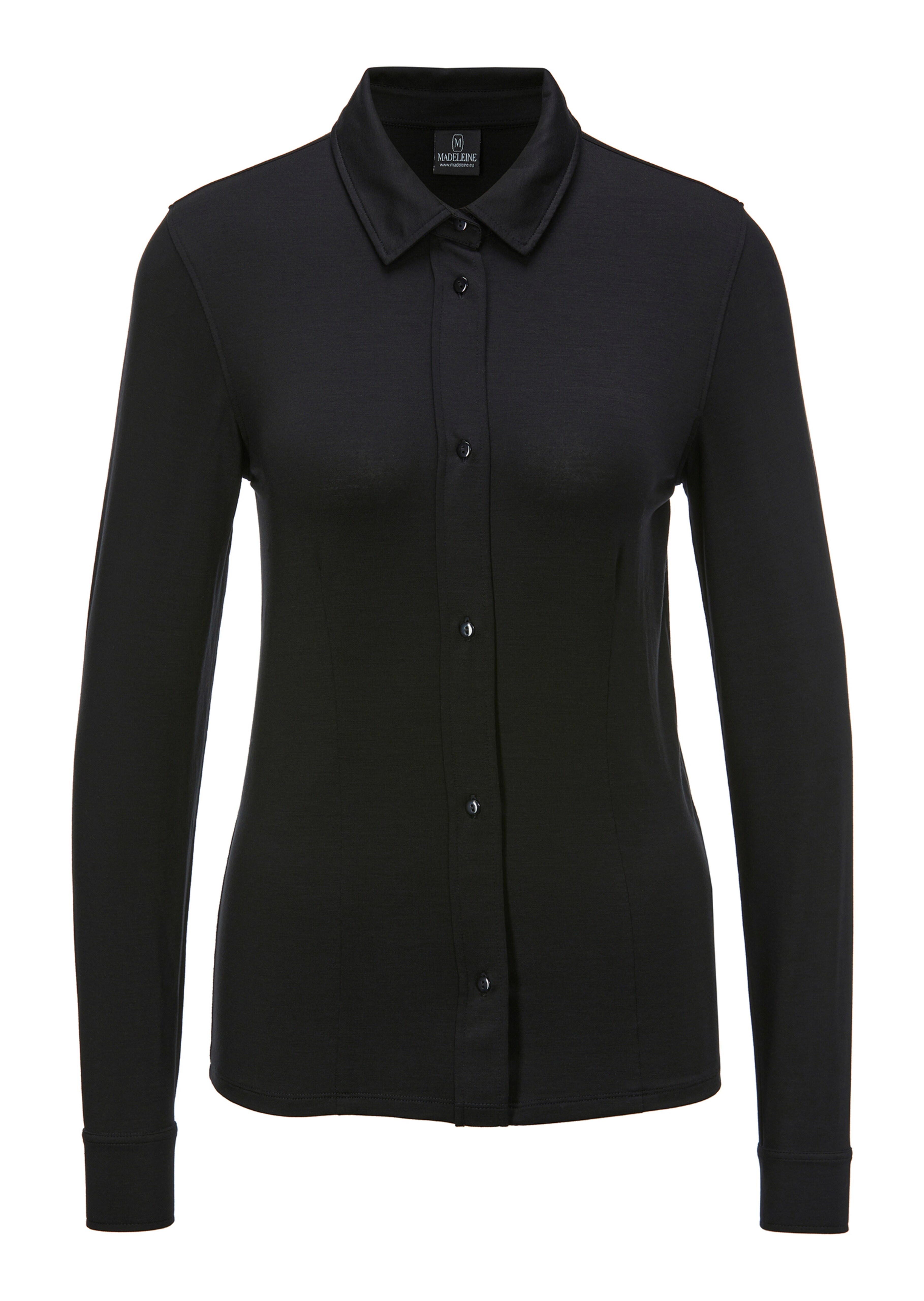Dieses Blusen-Shirt ist ein echter Klassiker und sollte in keinem Sortiment fehlen. Seine Kombinations-Möglichkeiten sind nahezu unbegrenzt und ergänzen modisch sportive Looks ebenso souverän, wie Business- oder Event-Garderoben. Die weich fließende Stretch-Qualität macht jede Bewegung mit und glänzt mit hautschmeichelndem Komfort. Ein Style, der keine Grenzen kennt und mit klassischen Attributen punktet. Hemdkragen, Rückenpasse, eine durchgehende Knopfleiste und lange Manschettenärmel setzen ein Statement. Taillenabnäher an Vorder- und Rückseite bringen das Lieblingsstück feminin auf Figur und runden den Look gekonnt ab.