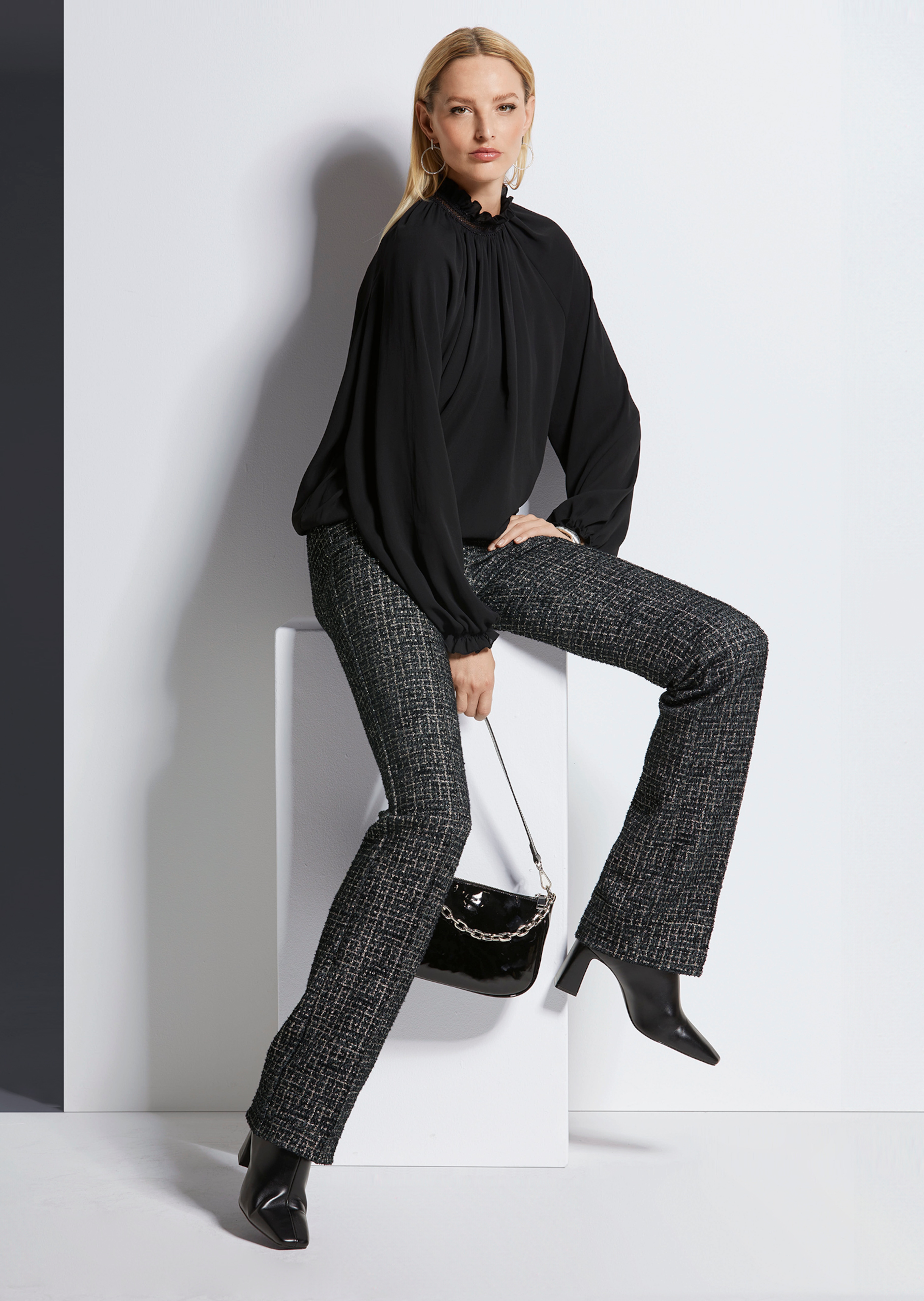 - Länge Bluse ca. 66 cm, hüftbedeckend. Länge Top ca. 58 cm, oberhalb Hüfte.
